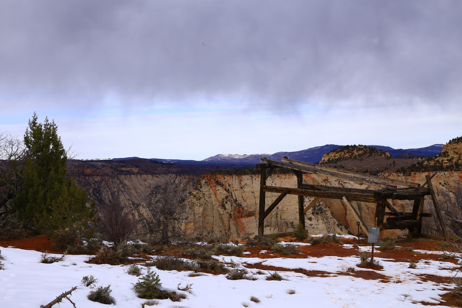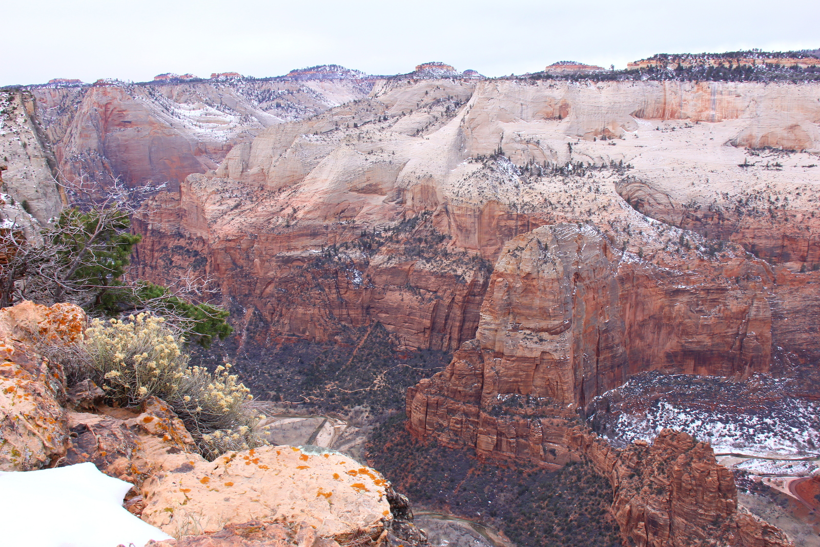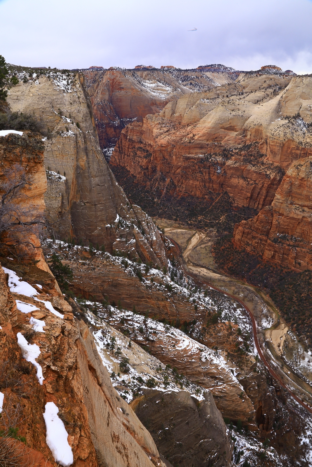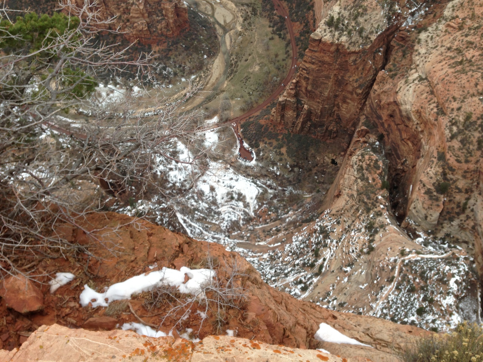 2013 December 29, Sunday, 8gv-1kb.jpg * Zion National Park - Cable Mountain hike end view - snowy switchbacks