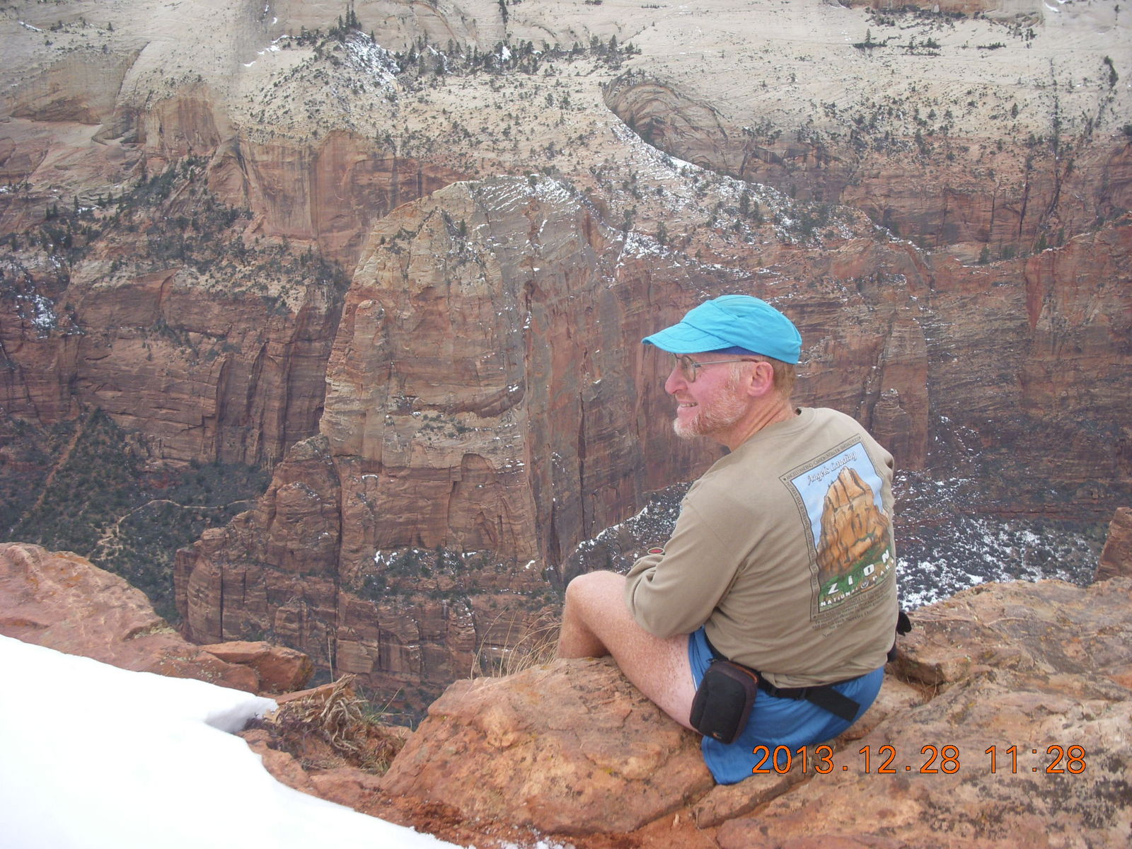2013 December 29, Sunday, 8gv-1kv.jpg * Zion National Park - Cable Mountain hike end view - Adam - Angels Landing + shirt