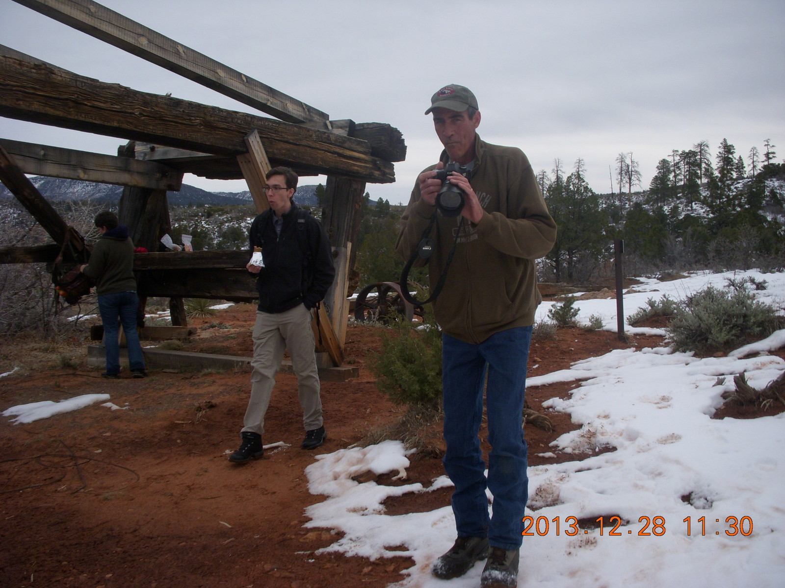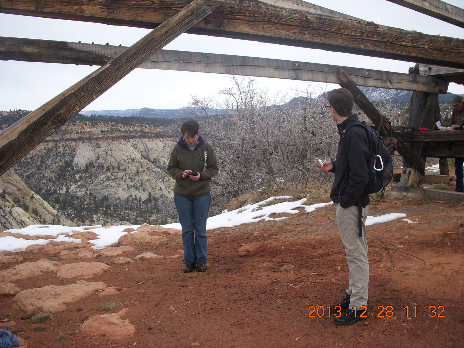 2013 December 29, Sunday, 8gv-1lj.jpg * Zion National Park - Cable Mountain hike end - structure, Shaun, Brian