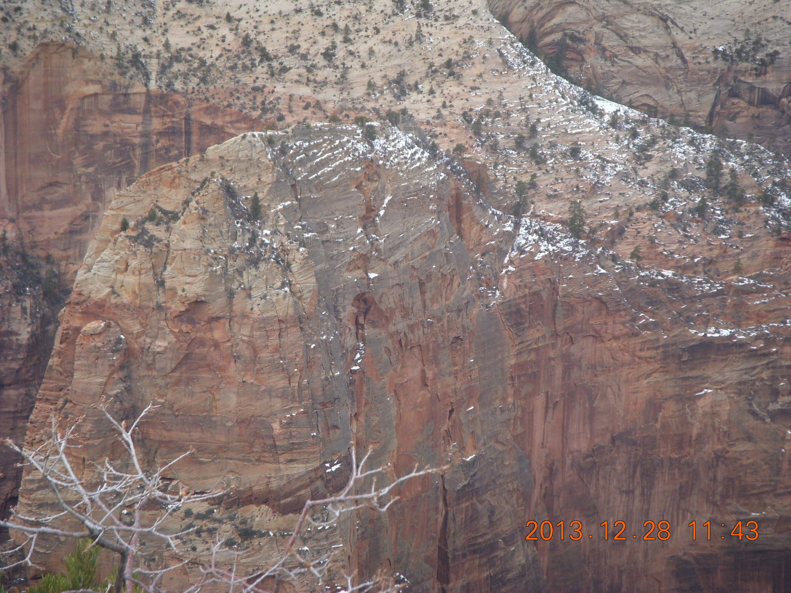 2013 December 29, Sunday, 8gv-1lt.jpg * Zion National Park - Cable Mountain hike end view - snowy switchbacks
