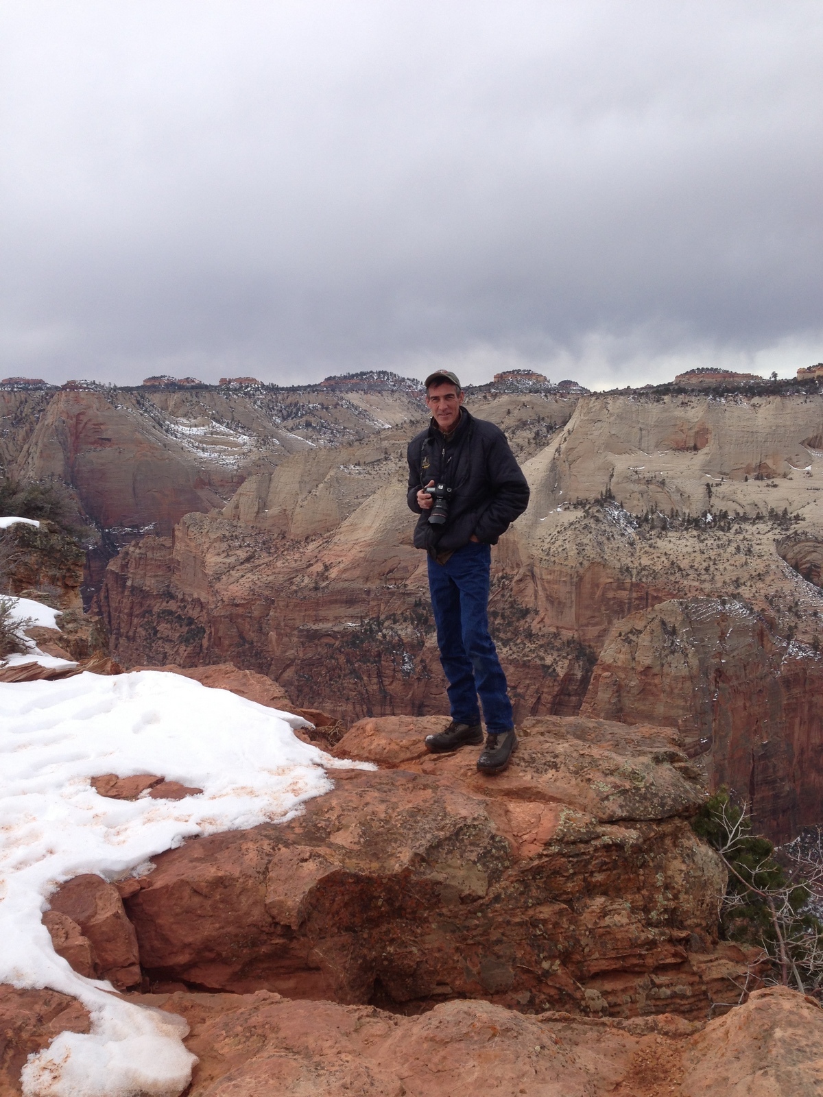 2013 December 29, Sunday, 8gv-1ls.jpg * Zion National Park - Cable Mountain hike end view - Brian balancing