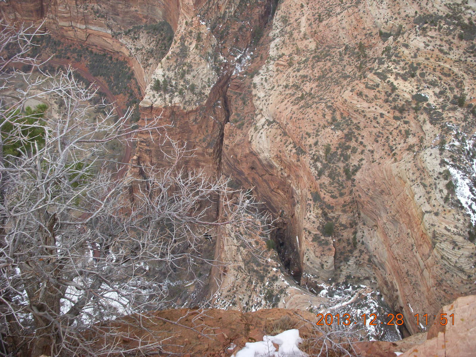 2013 December 29, Sunday, 8gv-1ka.jpg * Zion National Park - Cable Mountain hike end view - snowy switchbacks