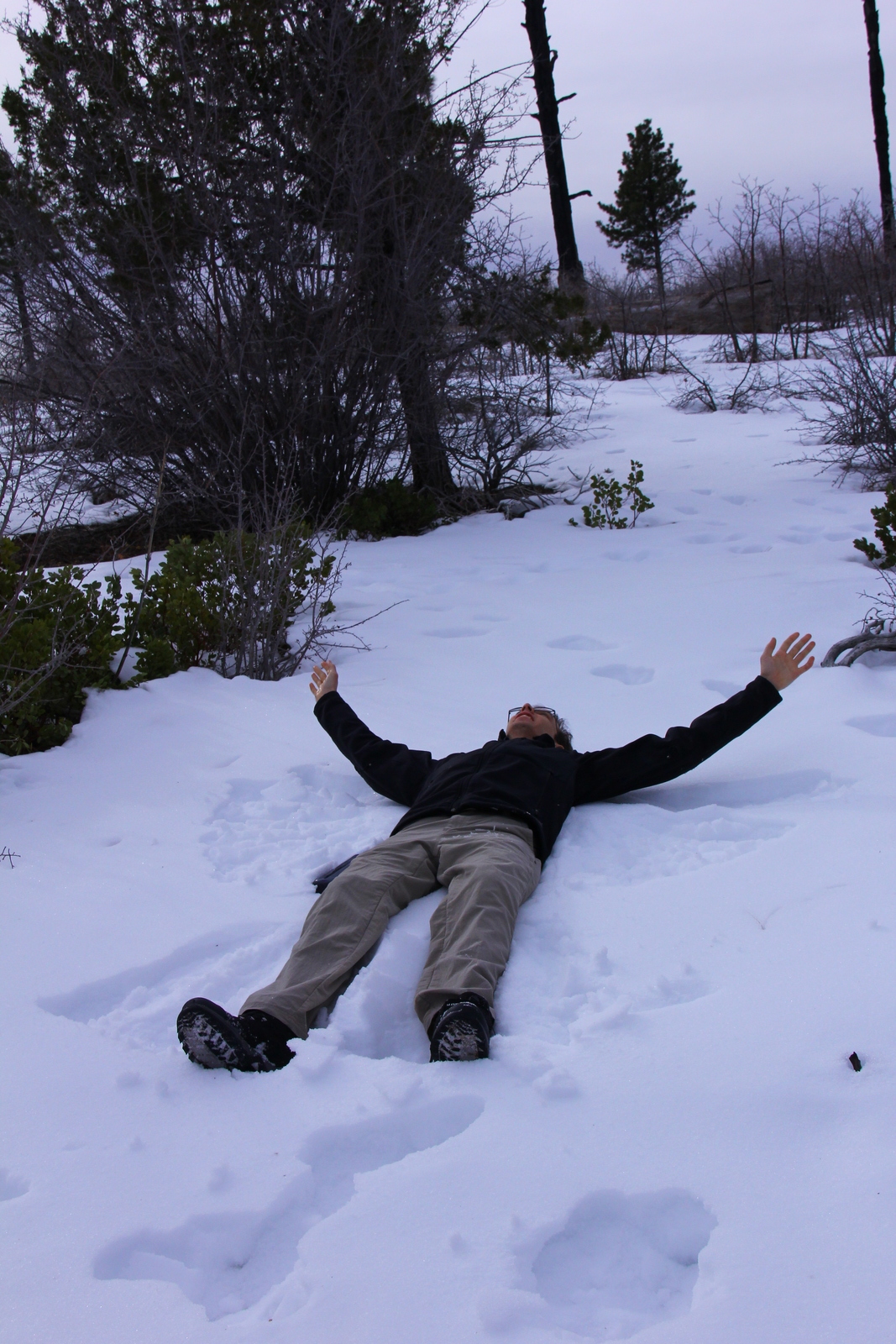 225 8gu. Zion National Park - Cable Mountain hike - Brian making a snow angel