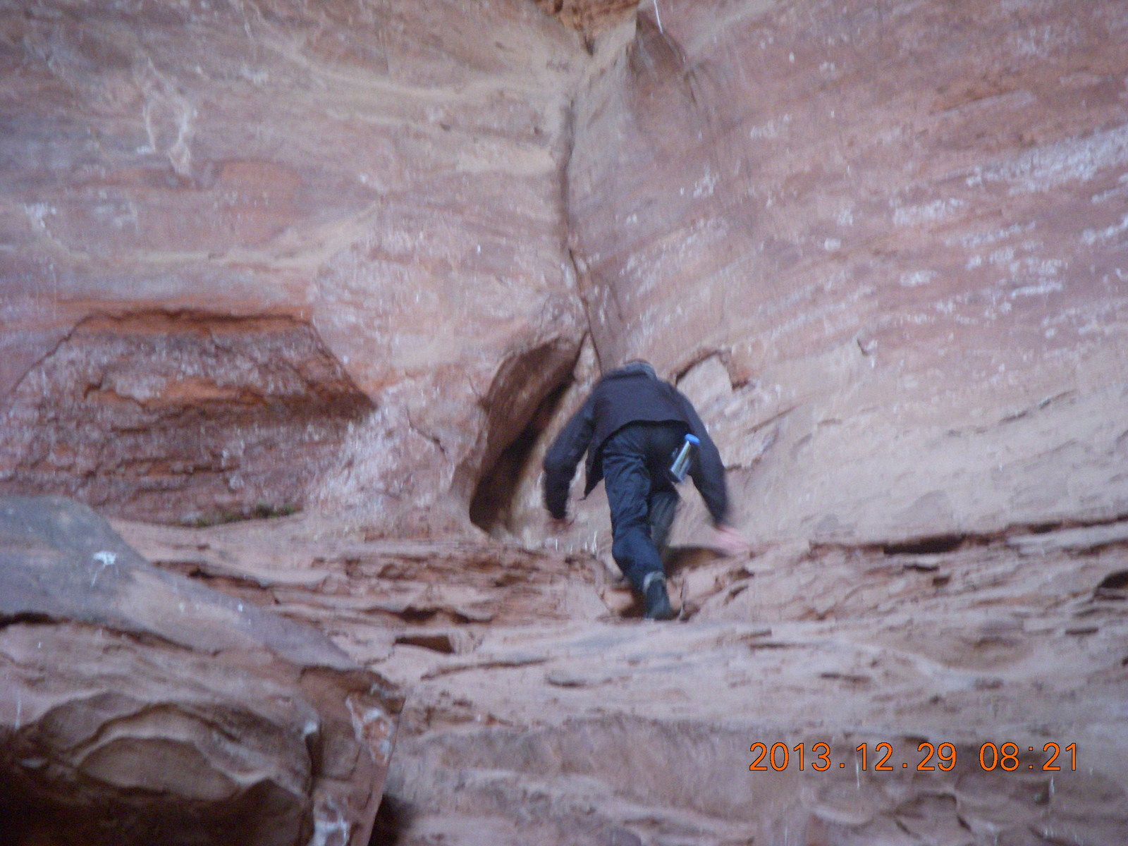 2013 December 29, Sunday, 8gv-t2l.jpg * Cave Valley hike - our echo cave - Brian climbing