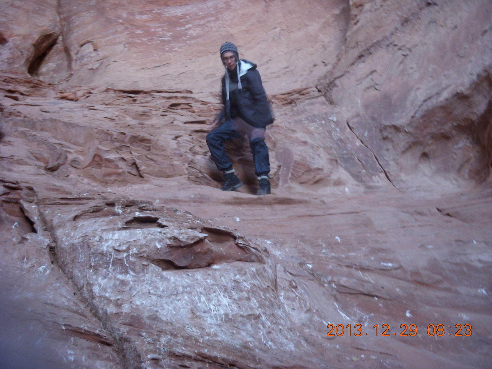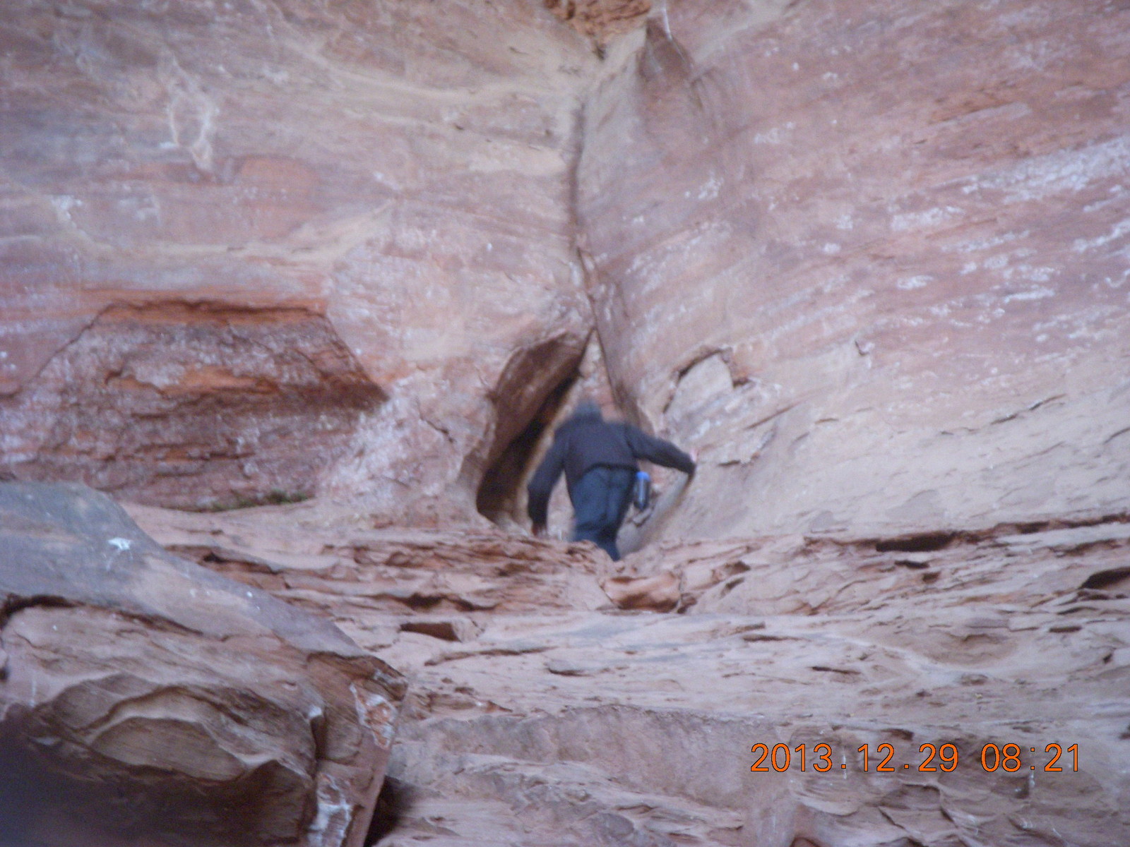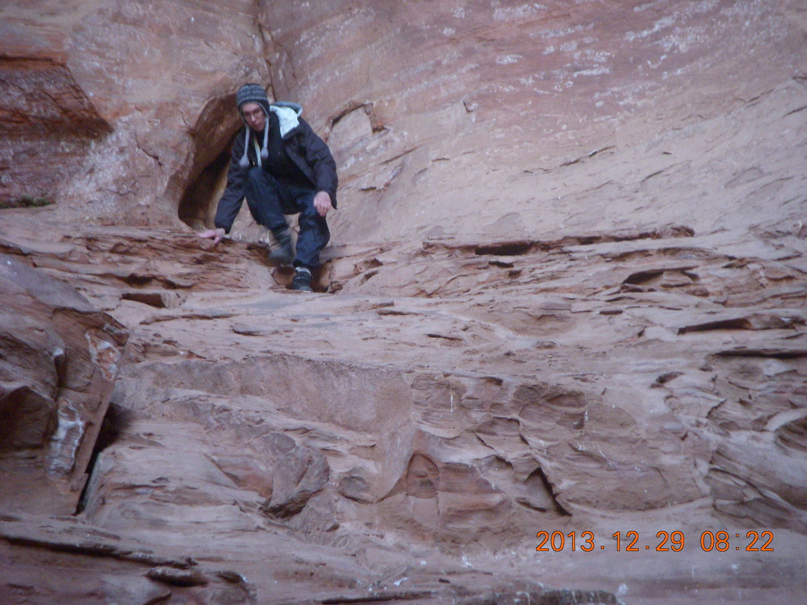 2013 December 29, Sunday, 8gv-t2w.jpg * Cave Valley hike - our echo cave - Brian climbing