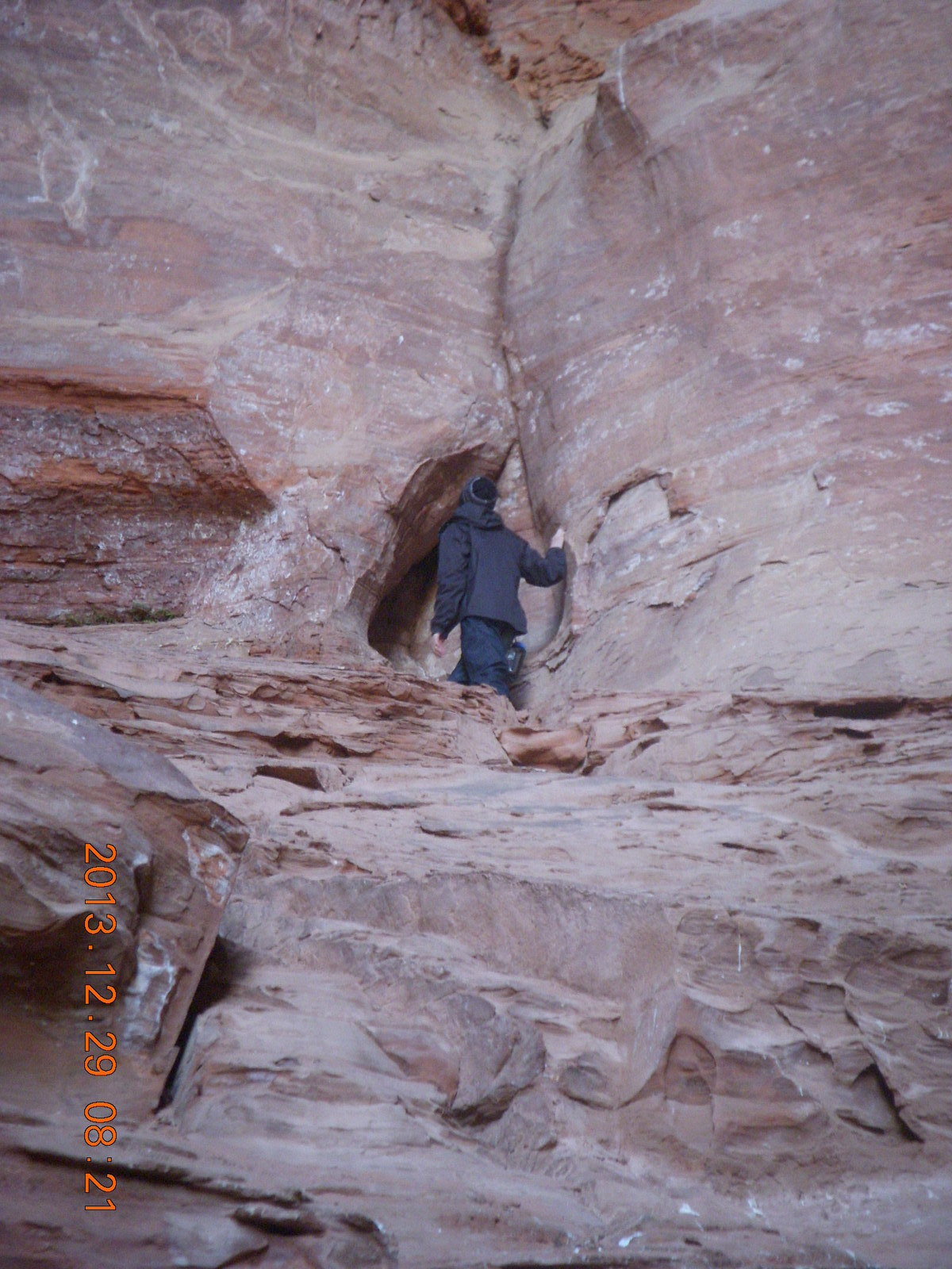 2013 December 29, Sunday, 8gv-t2m.jpg * Cave Valley hike - our echo cave - Brian climbing
