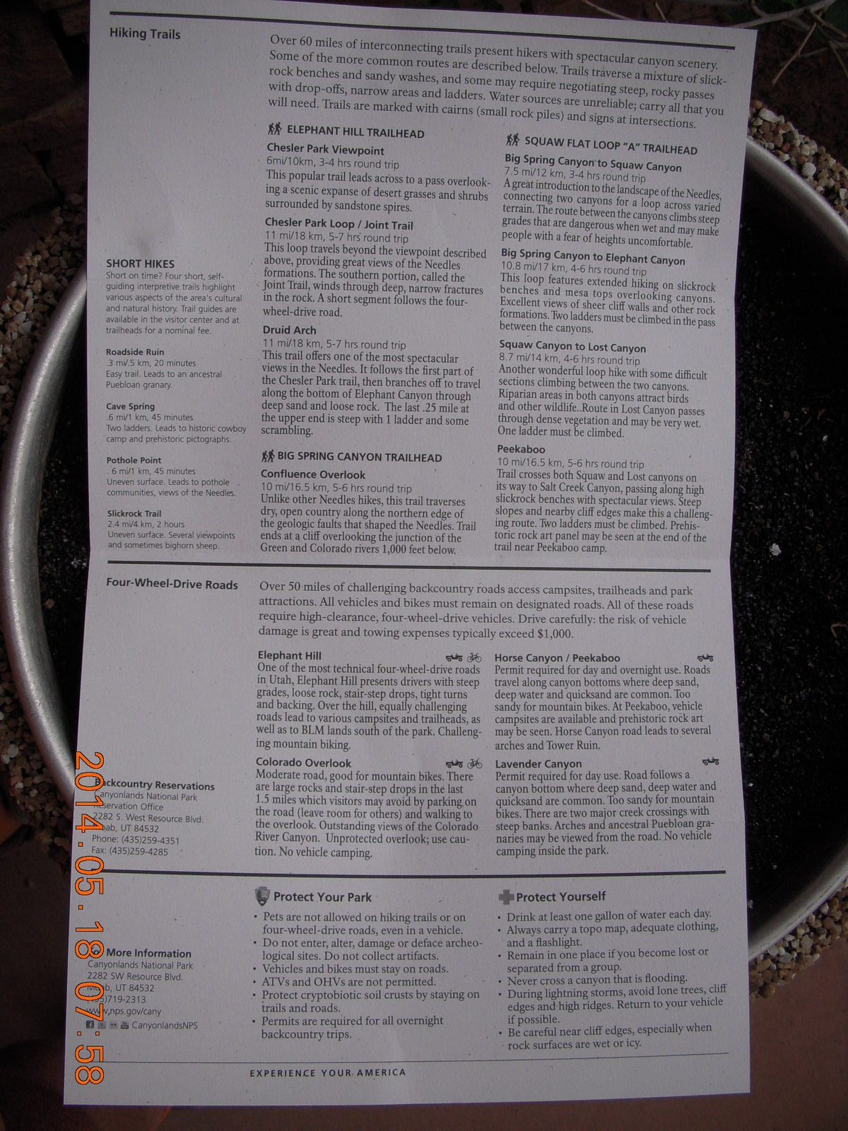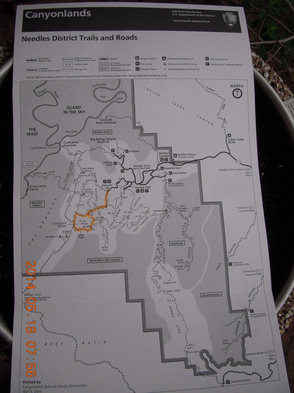 2014 May 18, Sunday, 8mj-tq1.jpg * Canyonlands National Park - Needles - Elephant Hill + Chesler Park hike map (back)