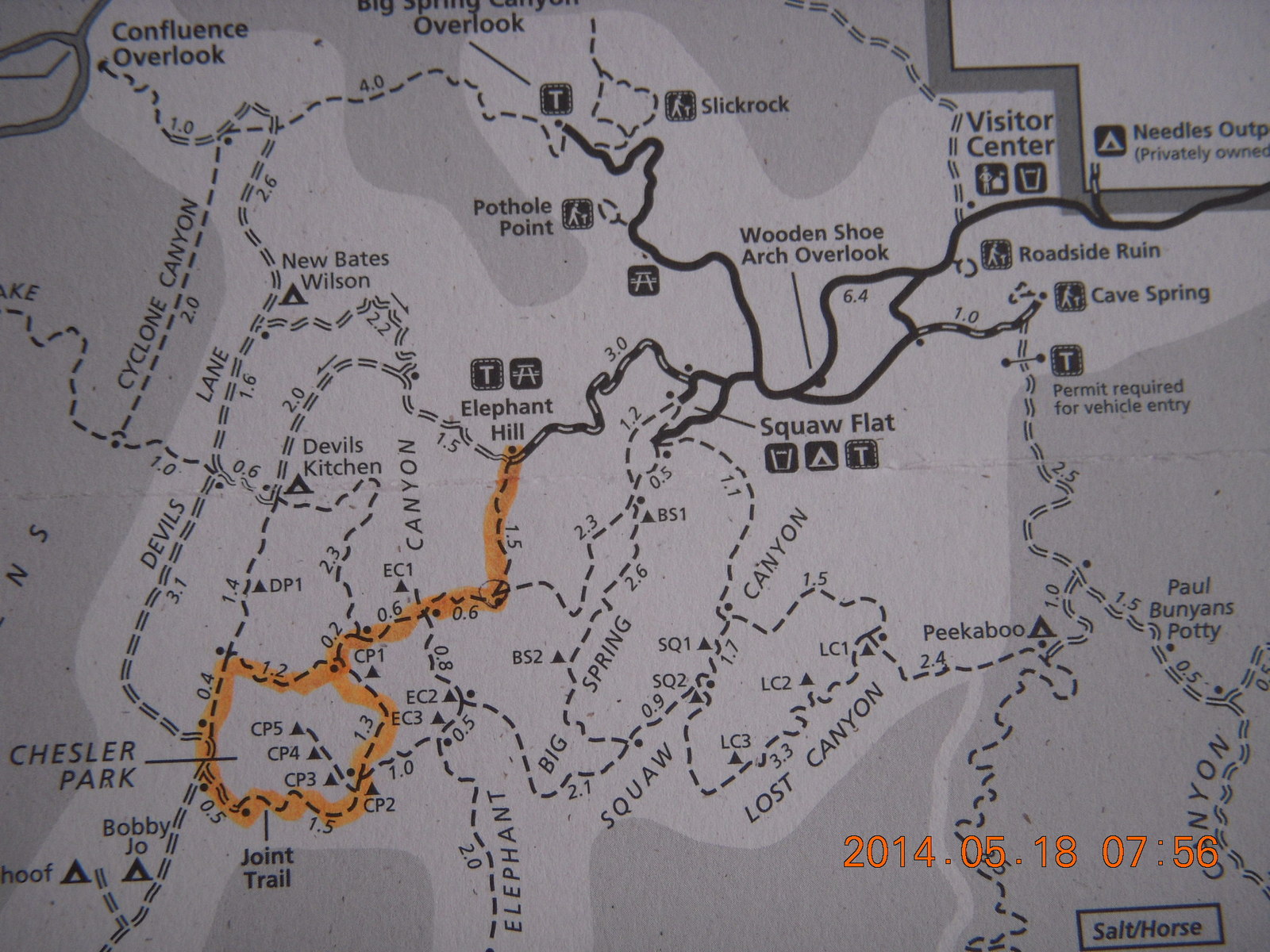 2014 May 18, Sunday, 8mj-tq0.jpg * Canyonlands National Park - Needles - Elephant Hill + Chesler Park hike map
