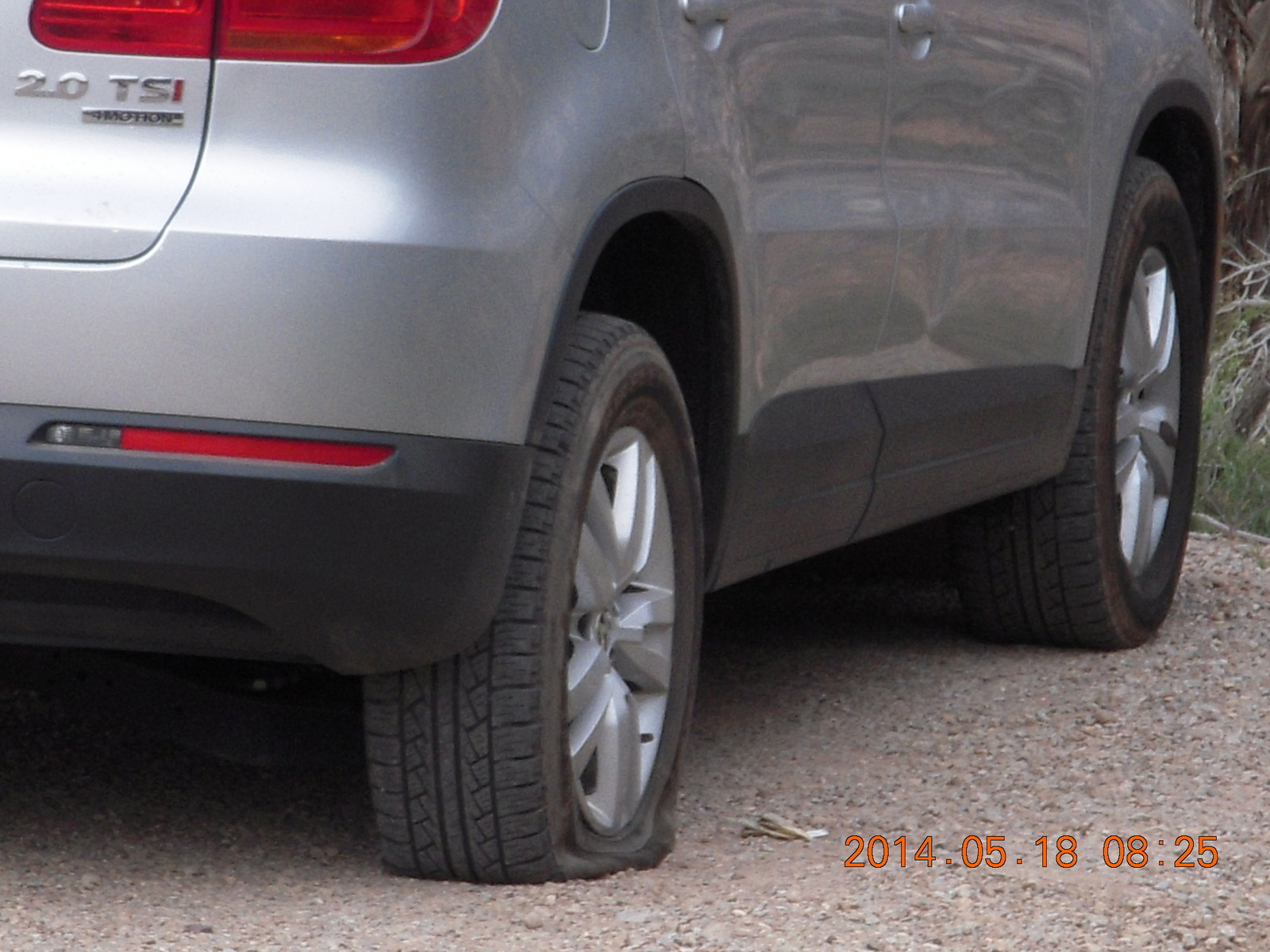2014 May 18, Sunday, 8mj-tq9.jpg * Canyonlands National Park - Needles - Elephant Hill parking area - flat tire, bad news for somebody