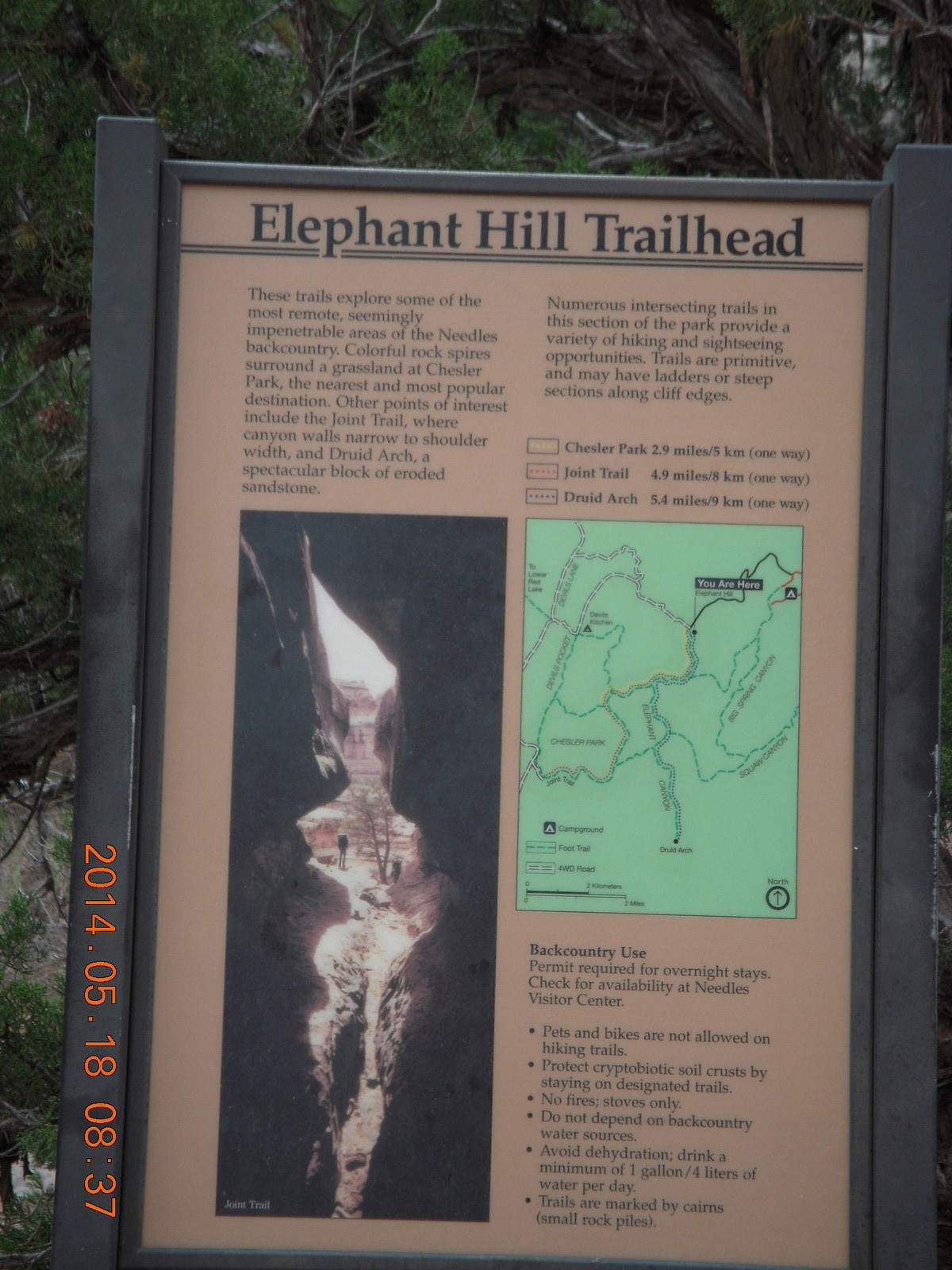 2014 May 18, Sunday, 8mj-trc.jpg * Canyonlands National Park - Needles - Elephant Hill + Chesler Park hike - sign + Adam