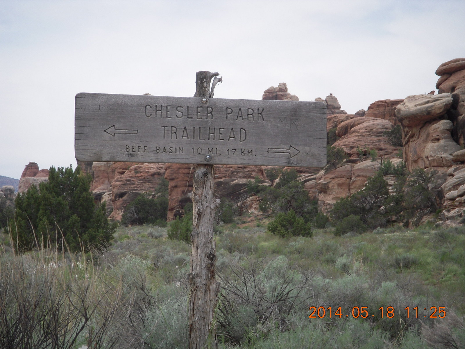 2014 May 18, Sunday, 8mj-tqp.jpg * Canyonlands National Park - Needles - Elephant Hill + Chesler Park hike sign