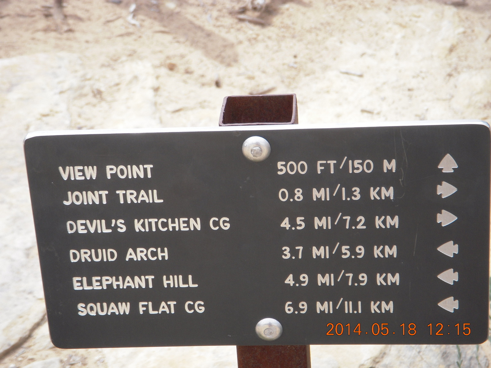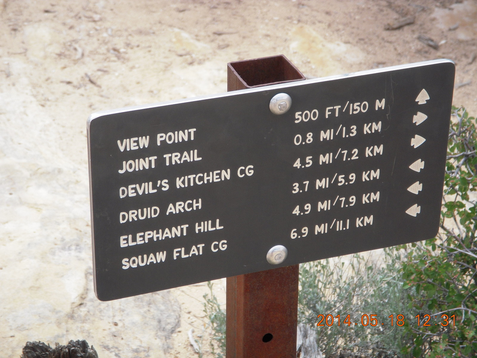 2014 May 18, Sunday, 8mj-tqc.jpg * Canyonlands National Park - Needles - Elephant Hill trailhead sign
