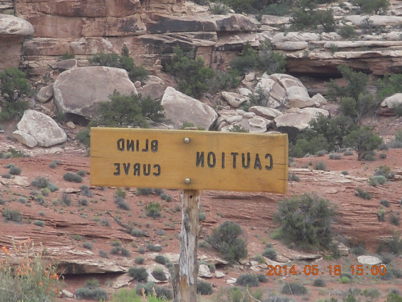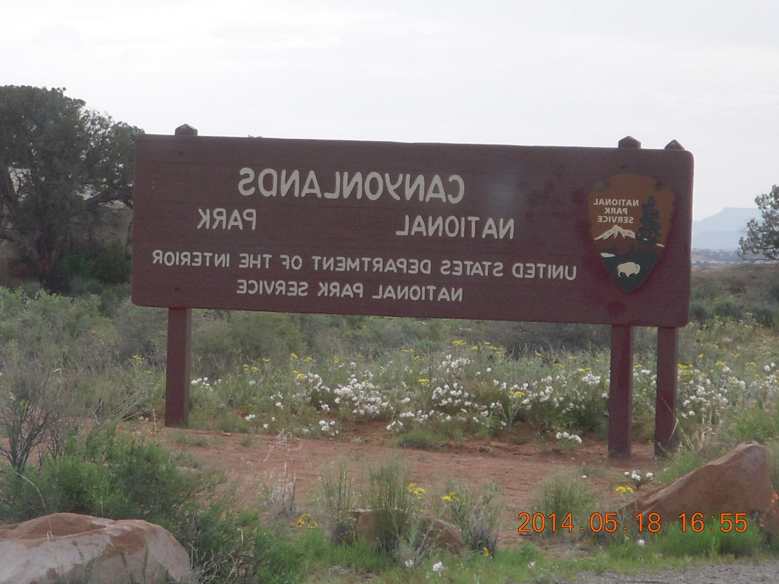 396 8mj. Canyonlands sign in reverse