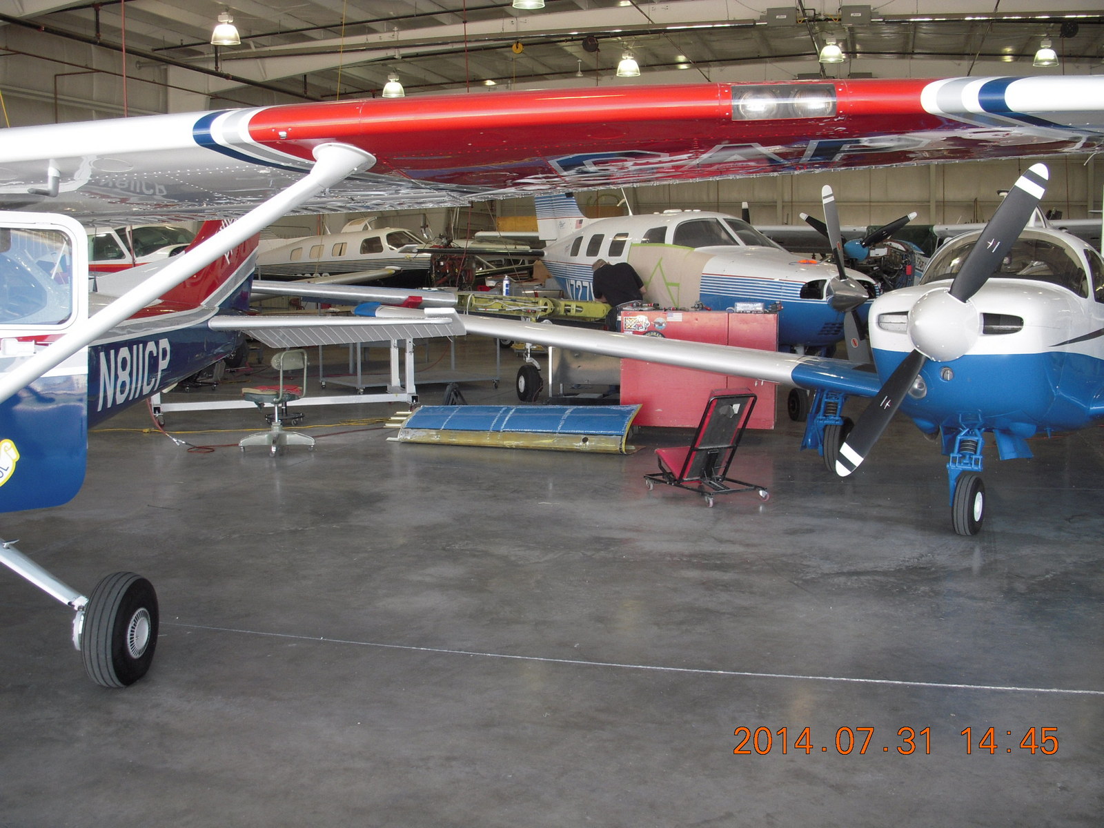 2014 July 31, Thursday, 8px-rv0.jpg * N8377W all shiny in Beegles hangar at Greeley (GXY)