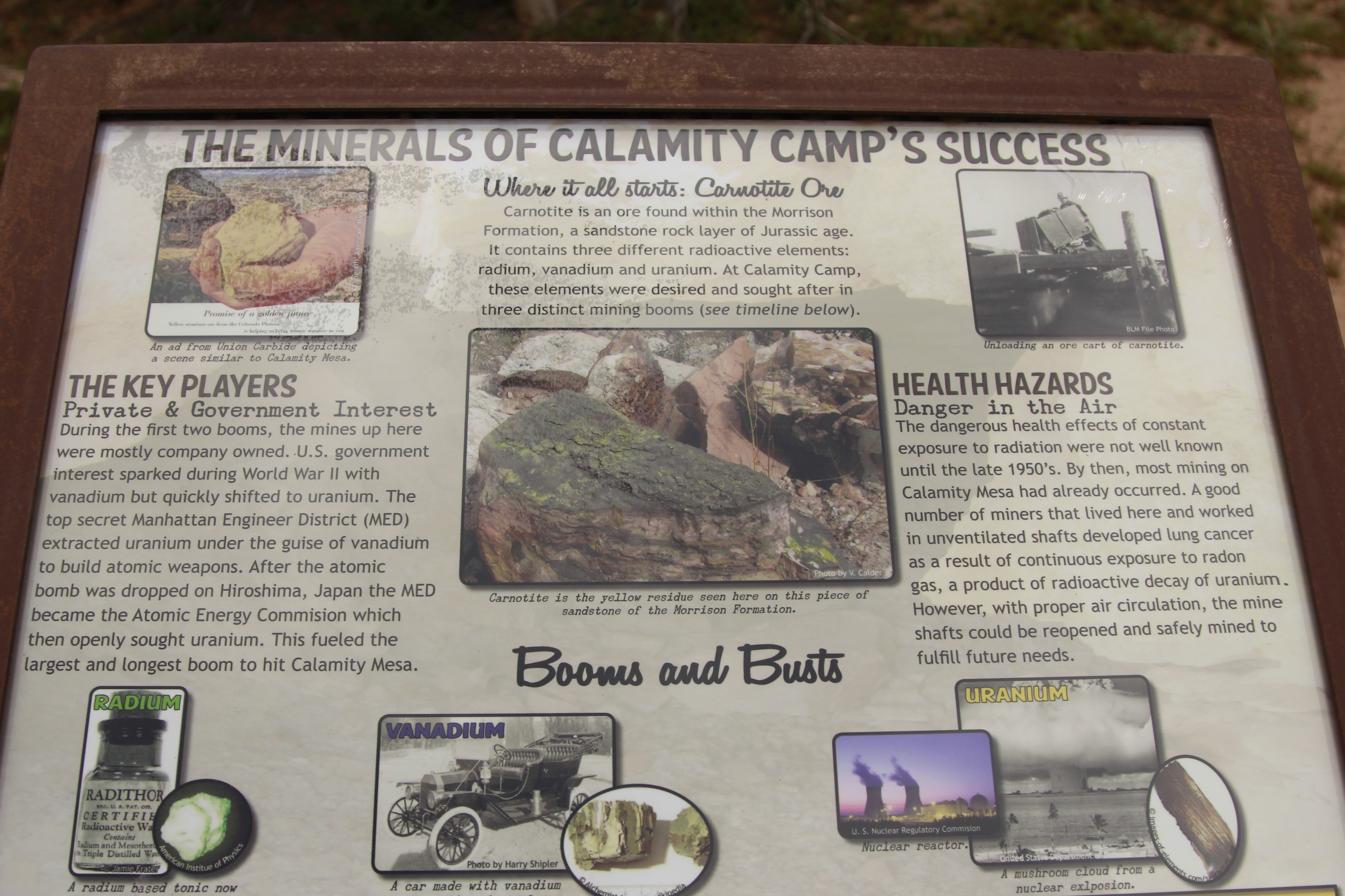 572 8zw. Calamity Mine camp site -  Booms and Busts sign