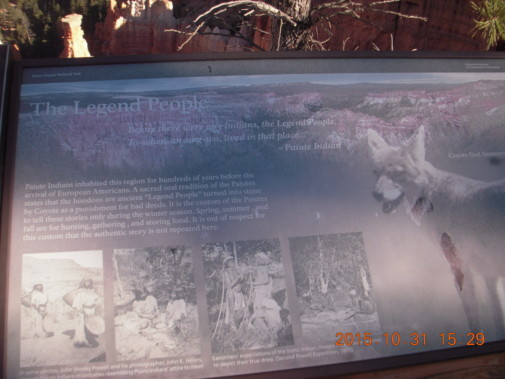 2015 October 31, Saturday, 94x-ug8.jpg * Bryce Canyon sign with legend of coyote god