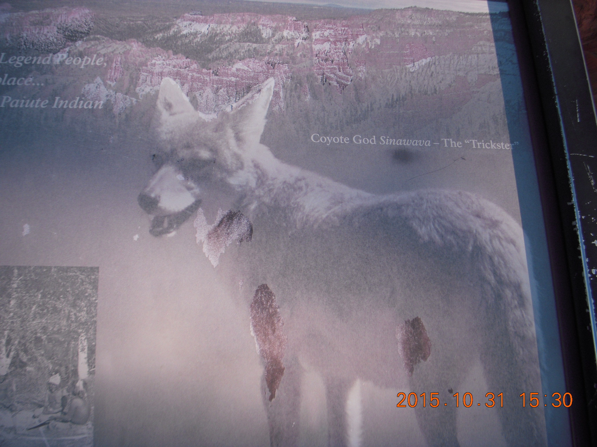 2015 October 31, Saturday, 94x-ug7.jpg * Bryce Canyon sign with legend of coyote god