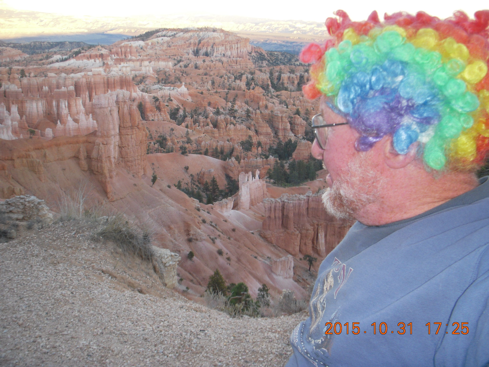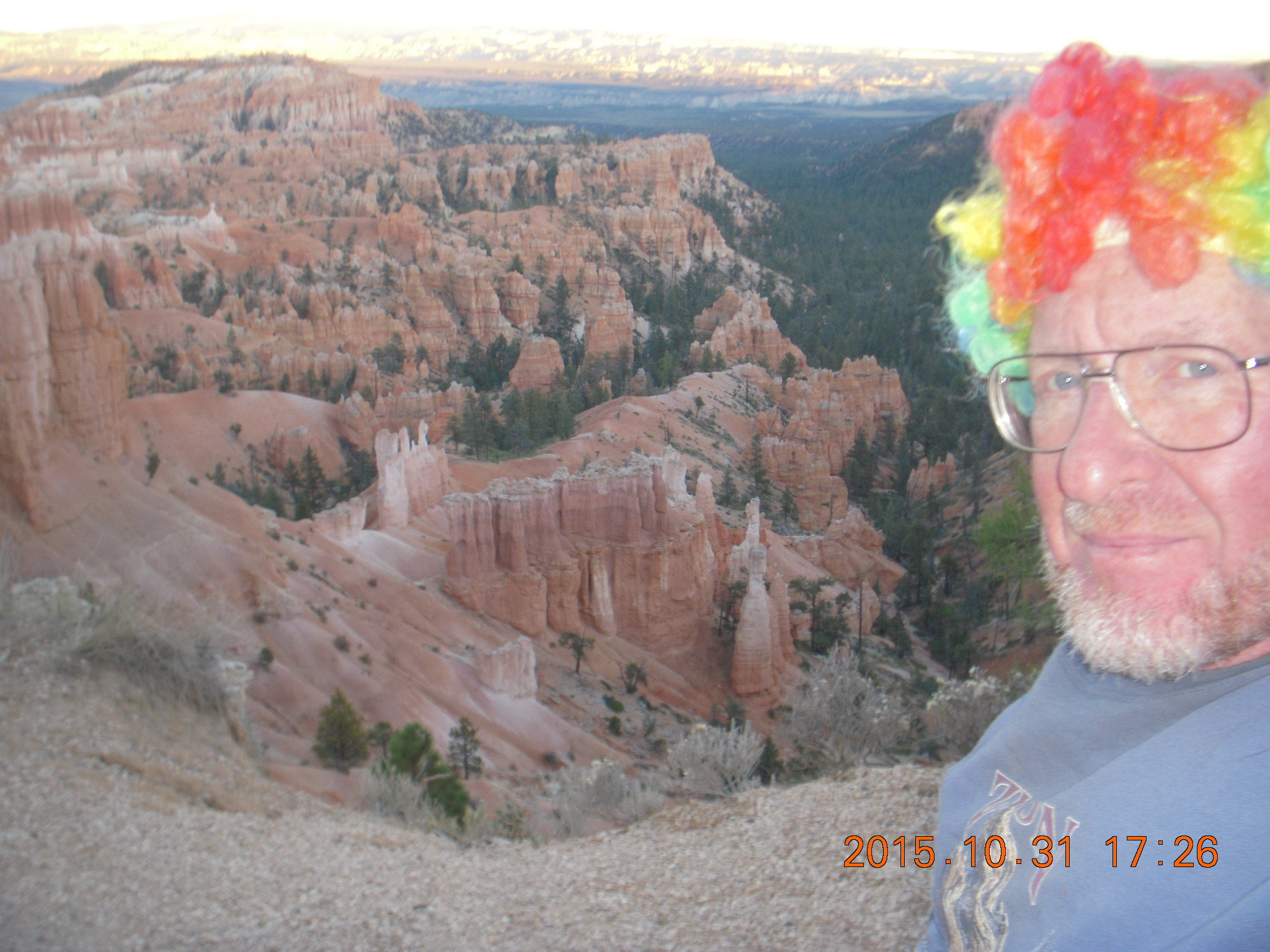 2015 October 31, Saturday, 94x-ugb.jpg * Bryce Canyon sunset + Adam with multicolor wig