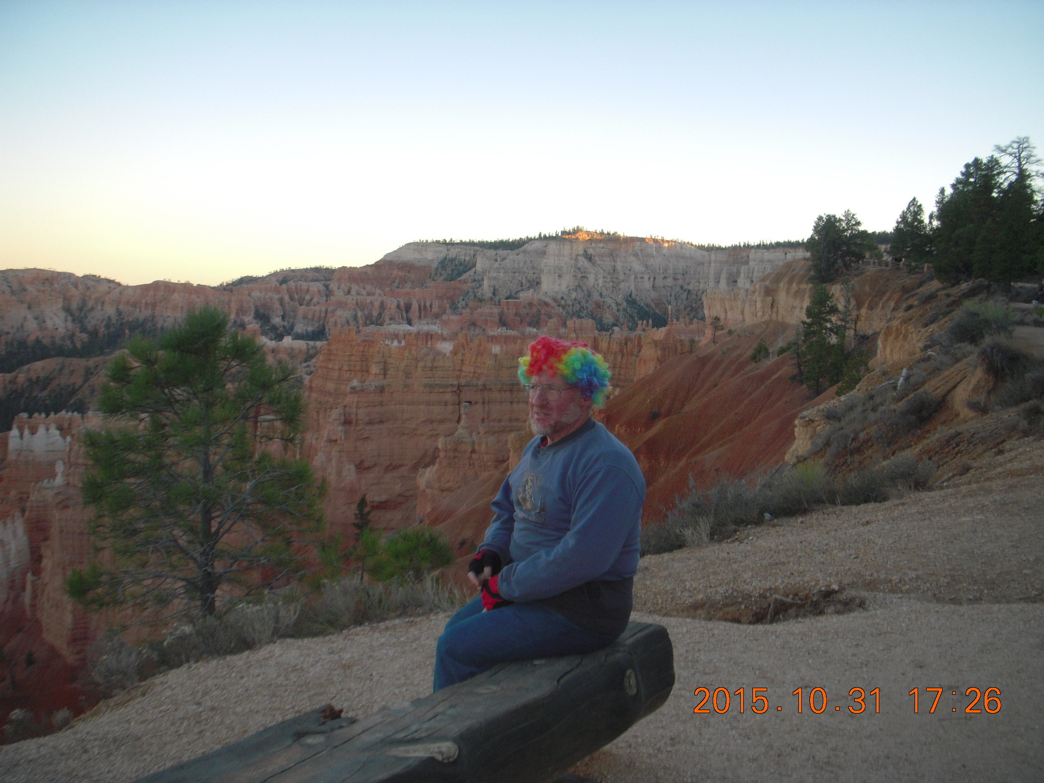 2015 October 31, Saturday, 94x-ugh.jpg * Bryce Canyon sunset + Adam with multicolor wig