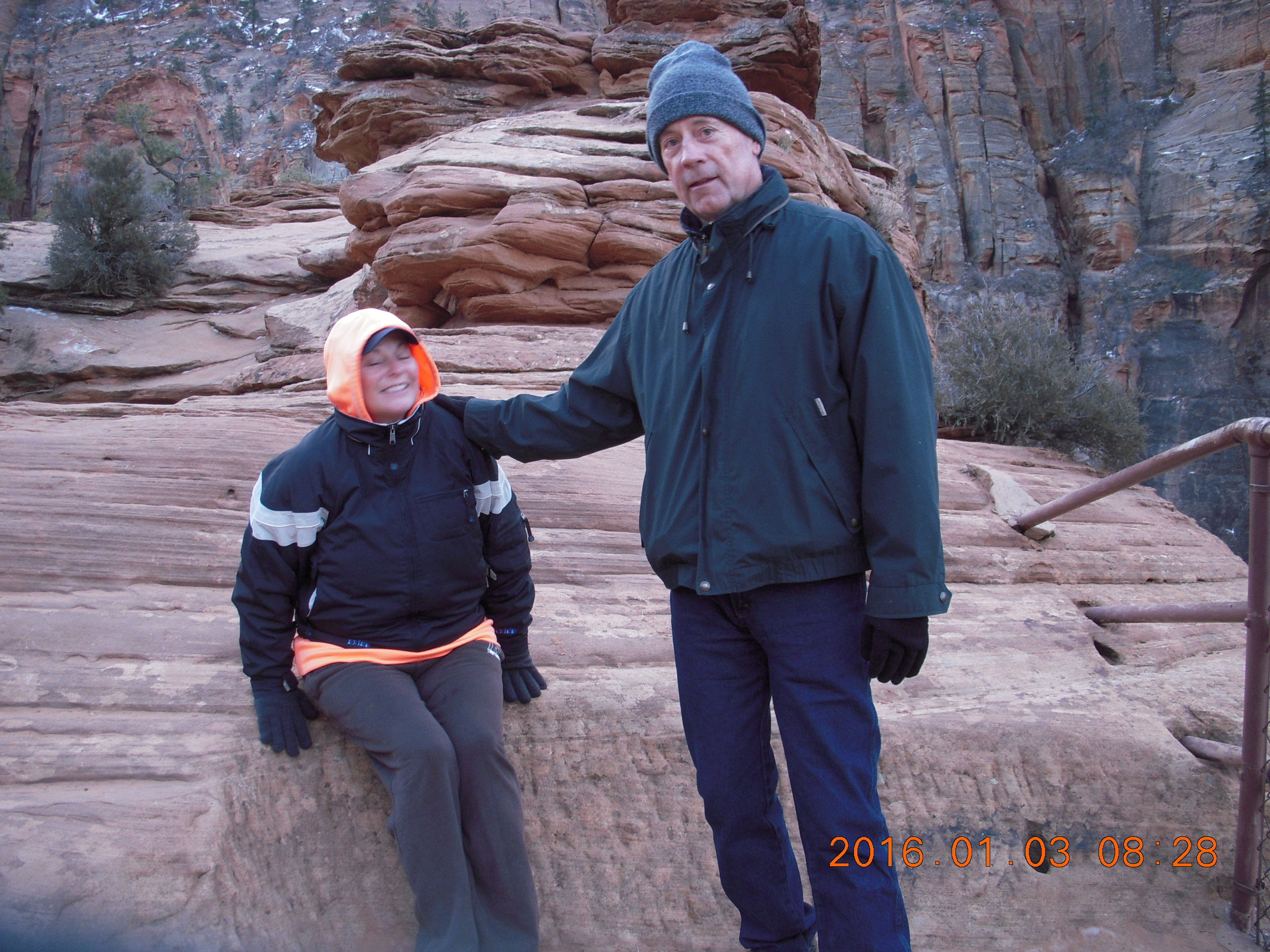 2016 January 3, Sunday, 973-rkr.jpg * Zion National Park - Canyon Overlook hike - Kit and Brad looking