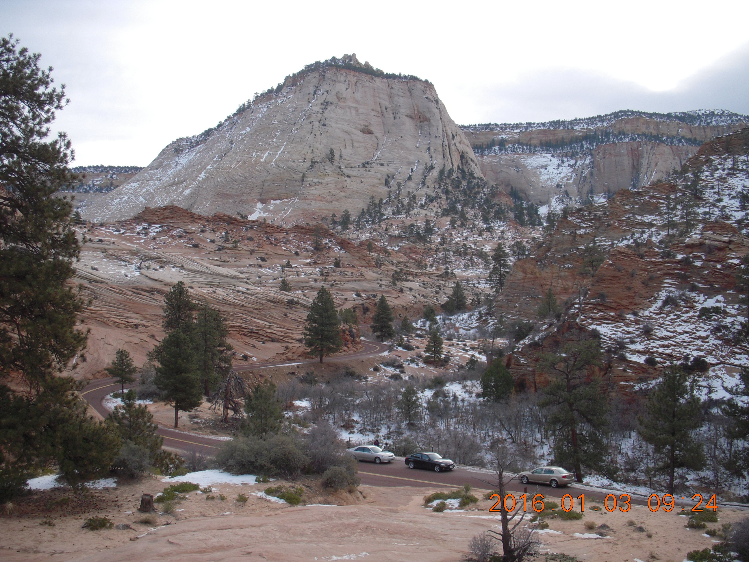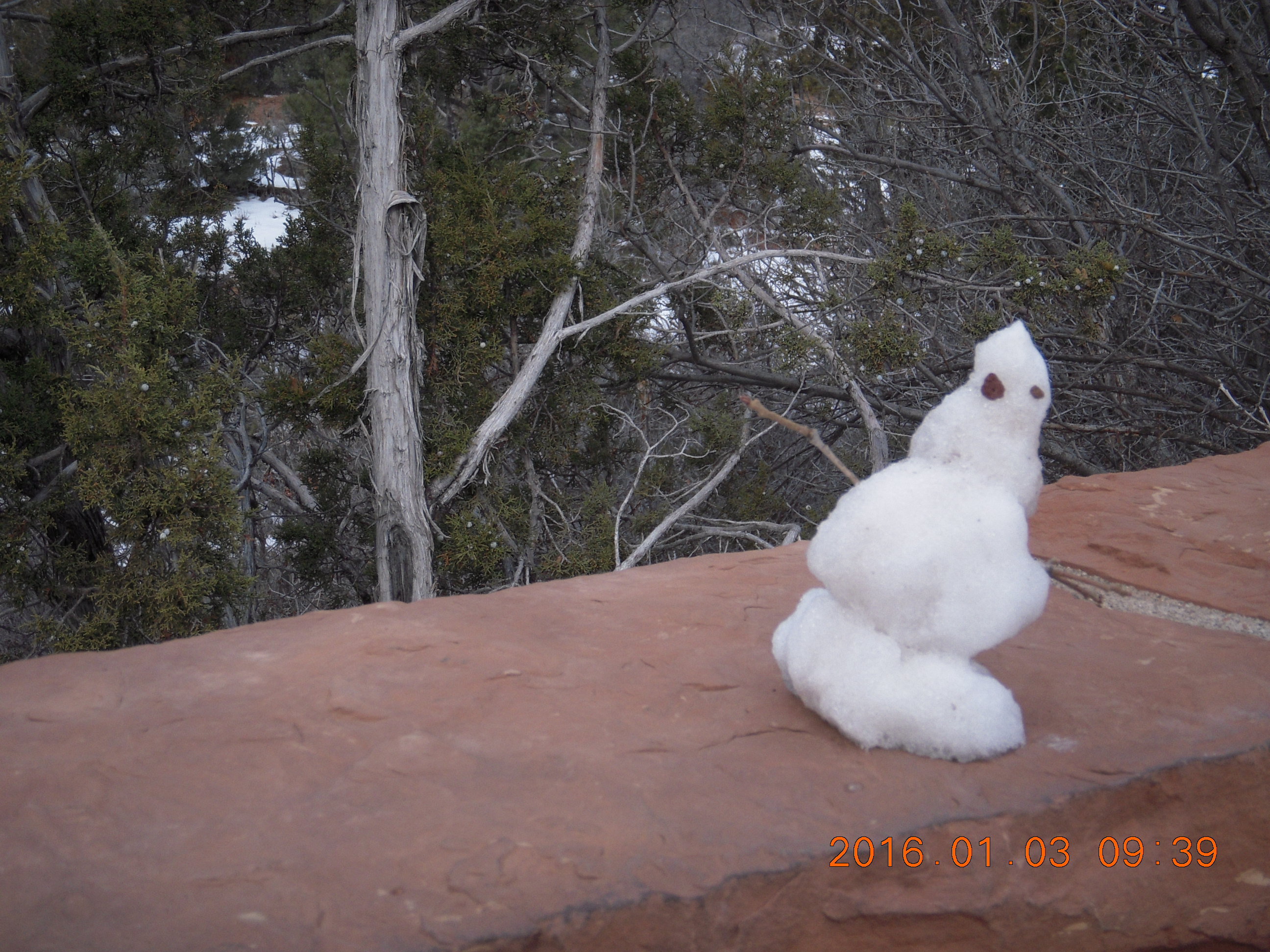2016 January 3, Sunday, 973-rly.jpg * Zion National Park - Checkerboard Mesa viewpoint - snowman