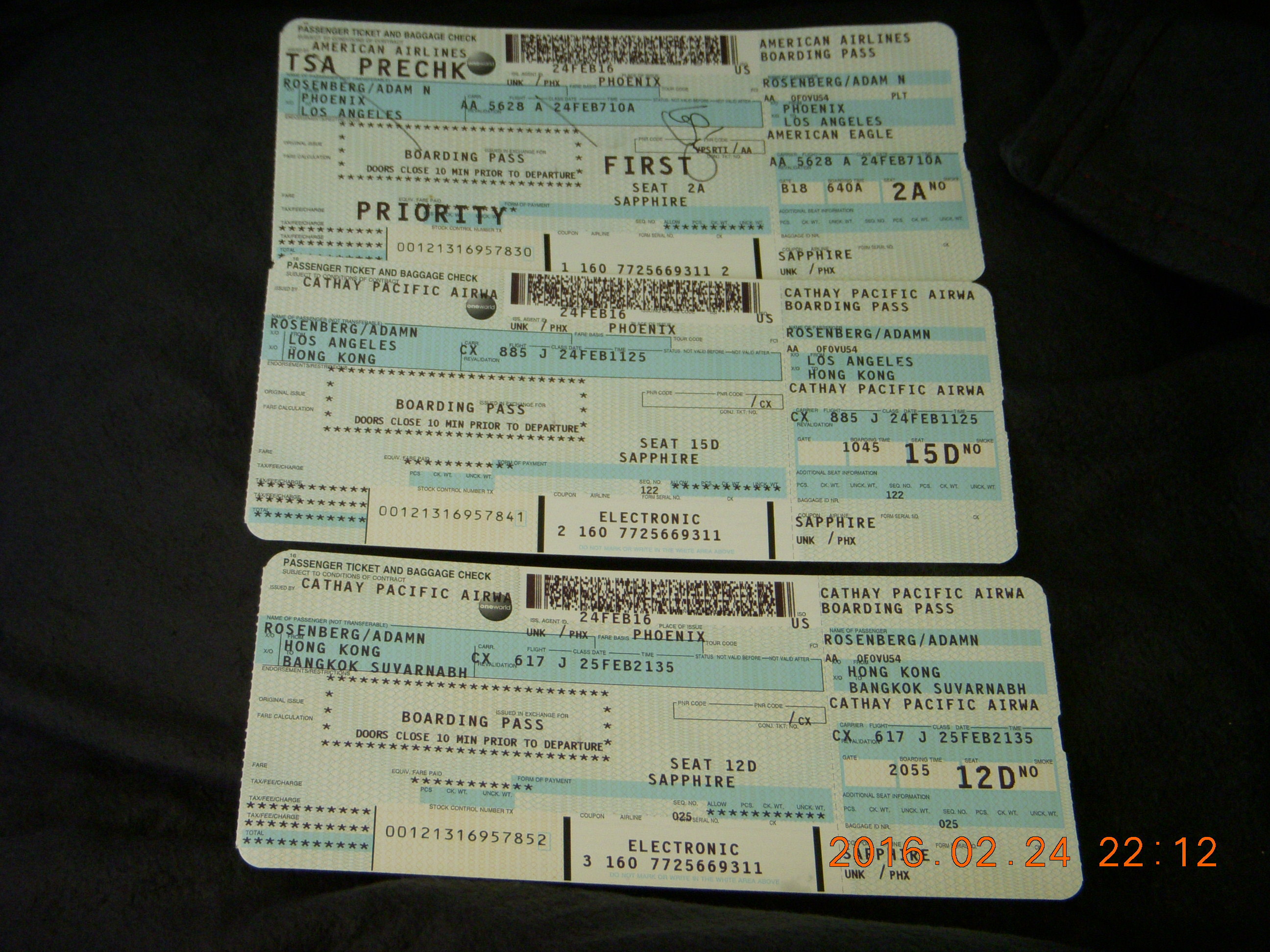 5 98q. my boarding passes PHX-LAX-HKG-BKK