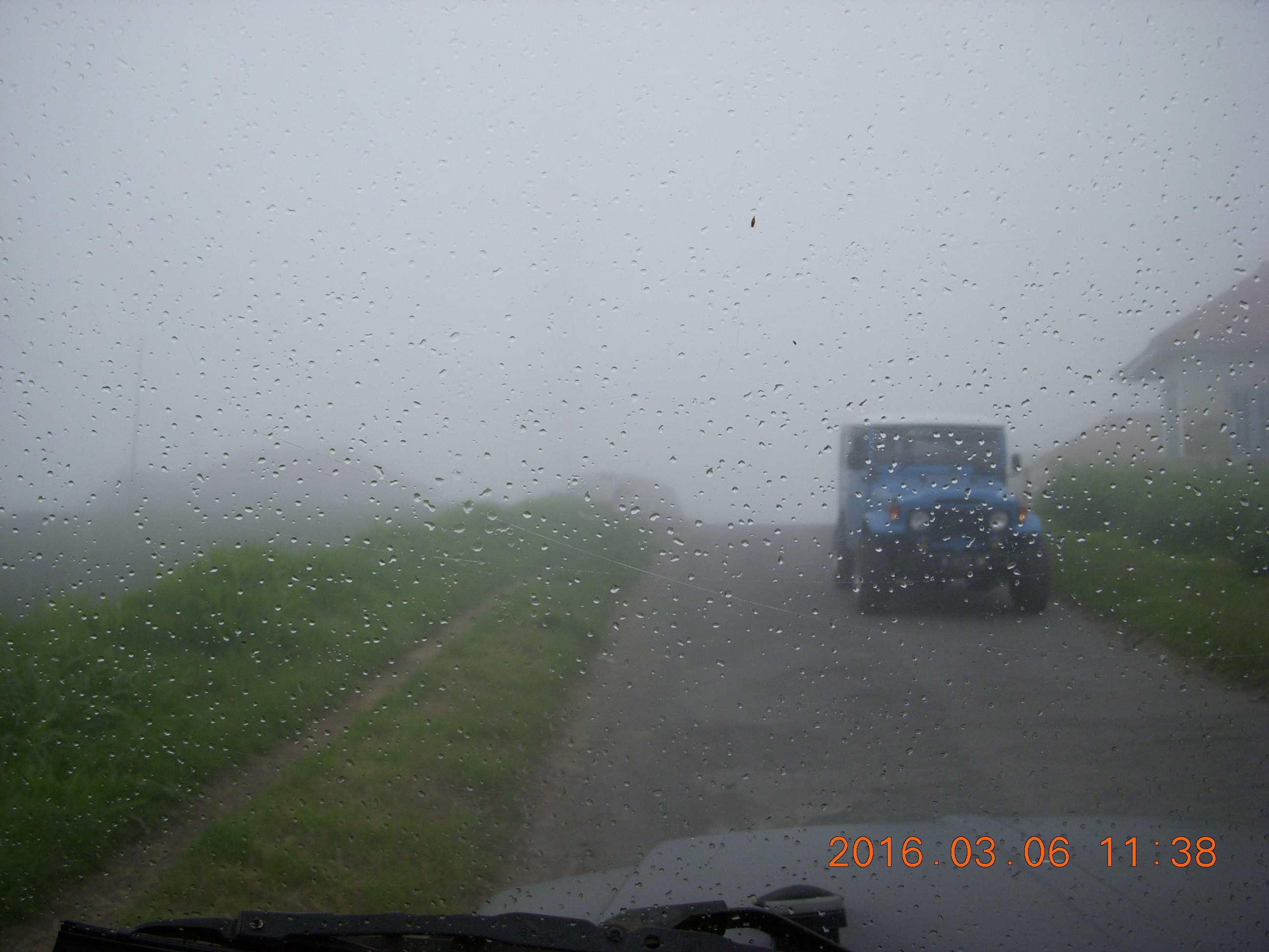 241 996. Indonesia - Mighty Mt. Bromo - Jeep ride down - rainy windshield