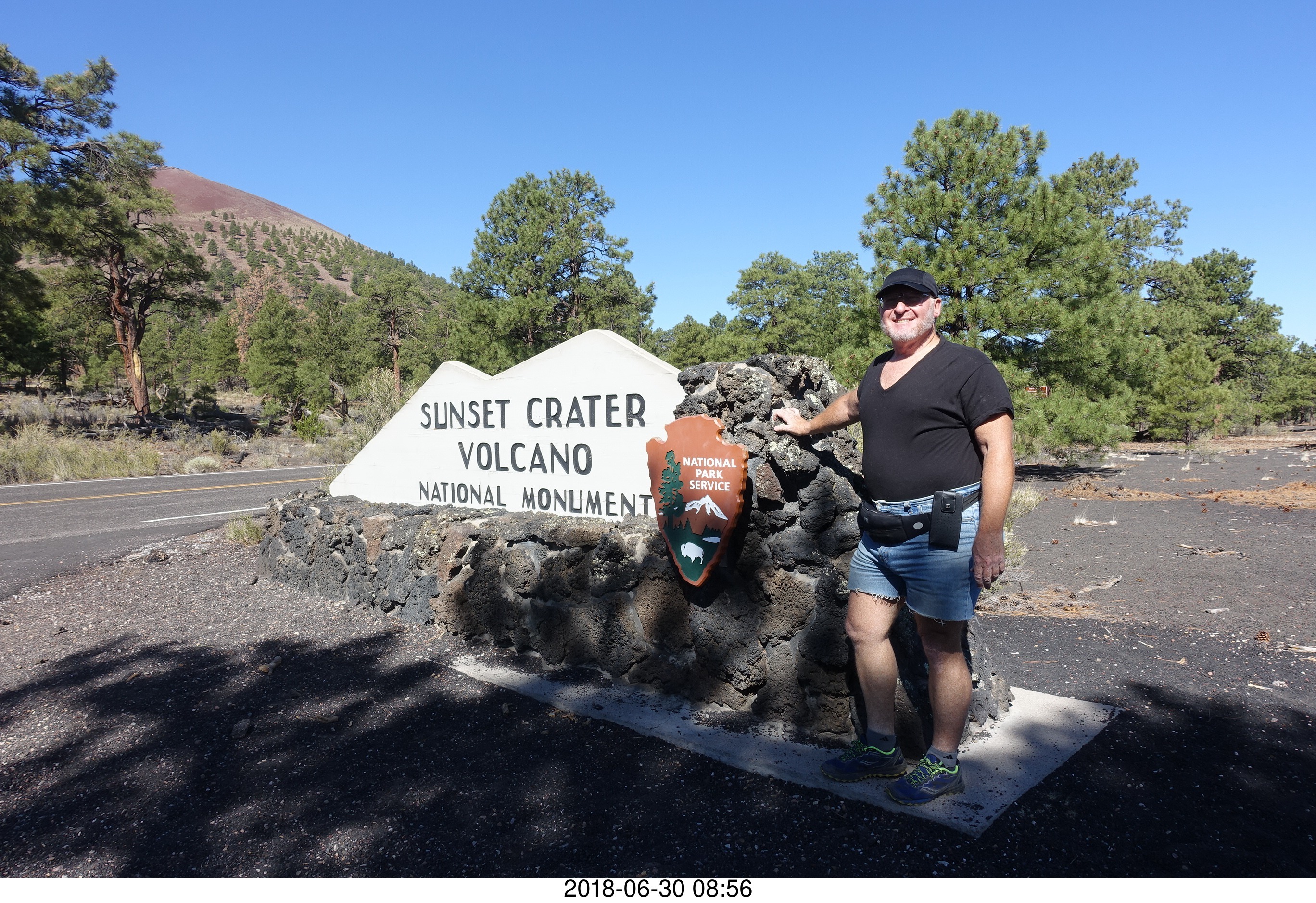 2018 June 30, Saturday, a2w-ule.jpg * drive from scottsdale to gateway canyon - Sunset crater sign + Adam