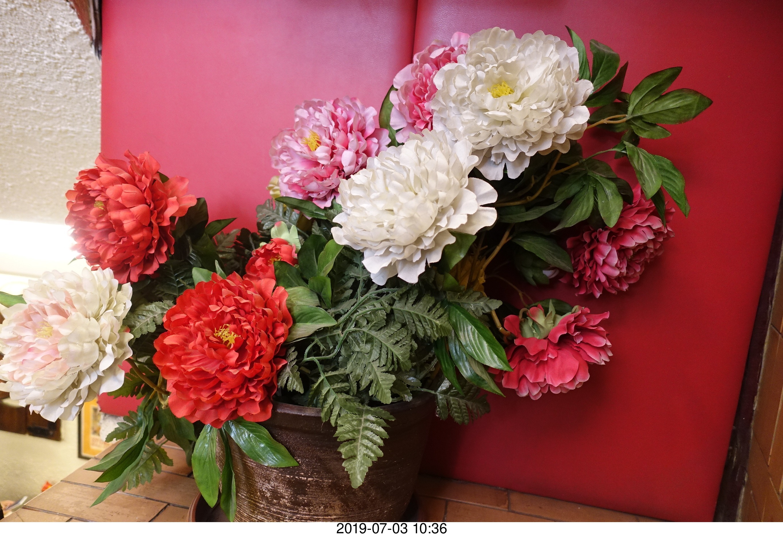 2019 July 3, Wednesday, af3-y2z.jpg * Chile - Santiago tour - crowded restaurant just like New York - flowers