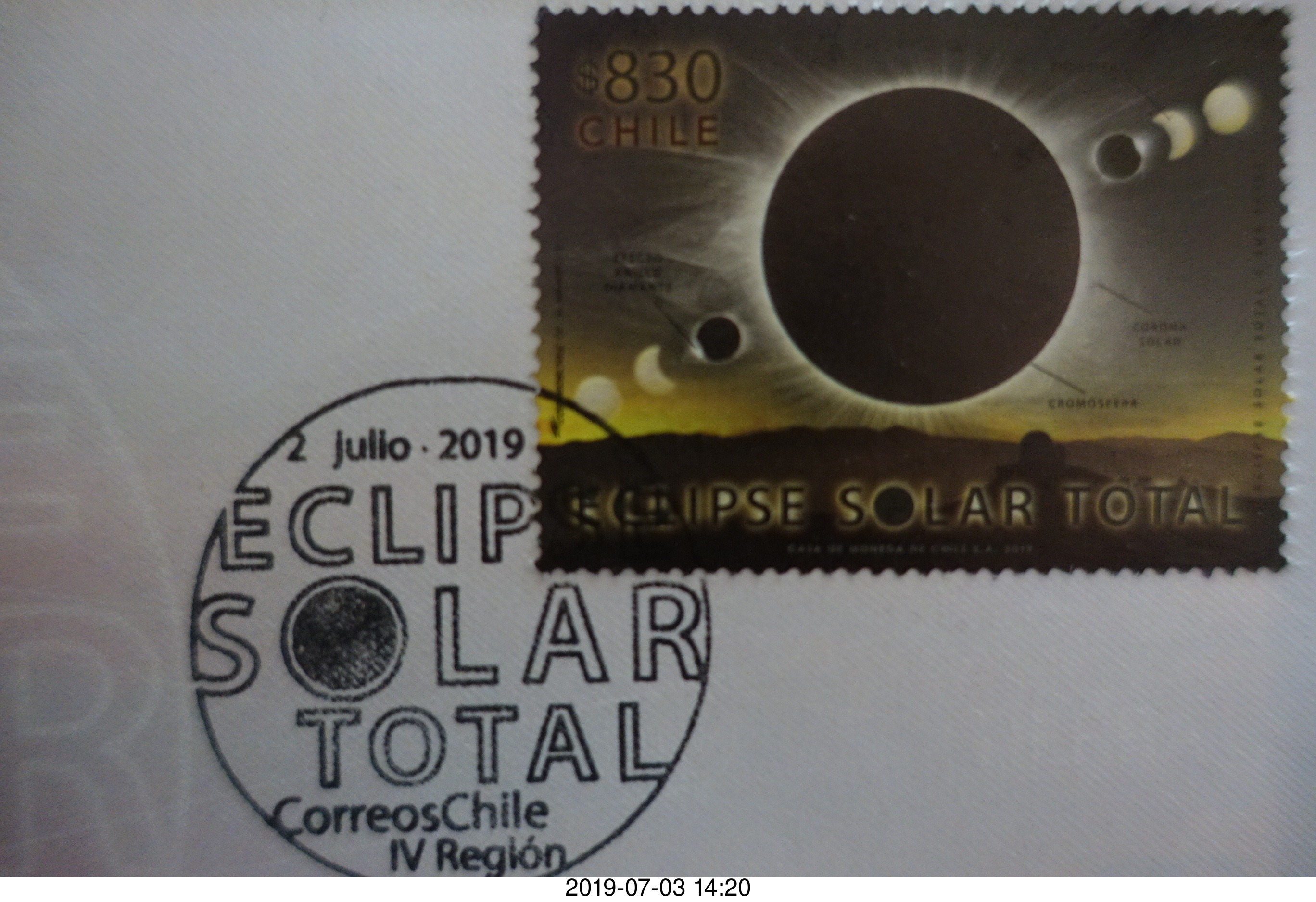 190 a0f. Chile - Santiago tour - first day of issue solar eclipse stamp