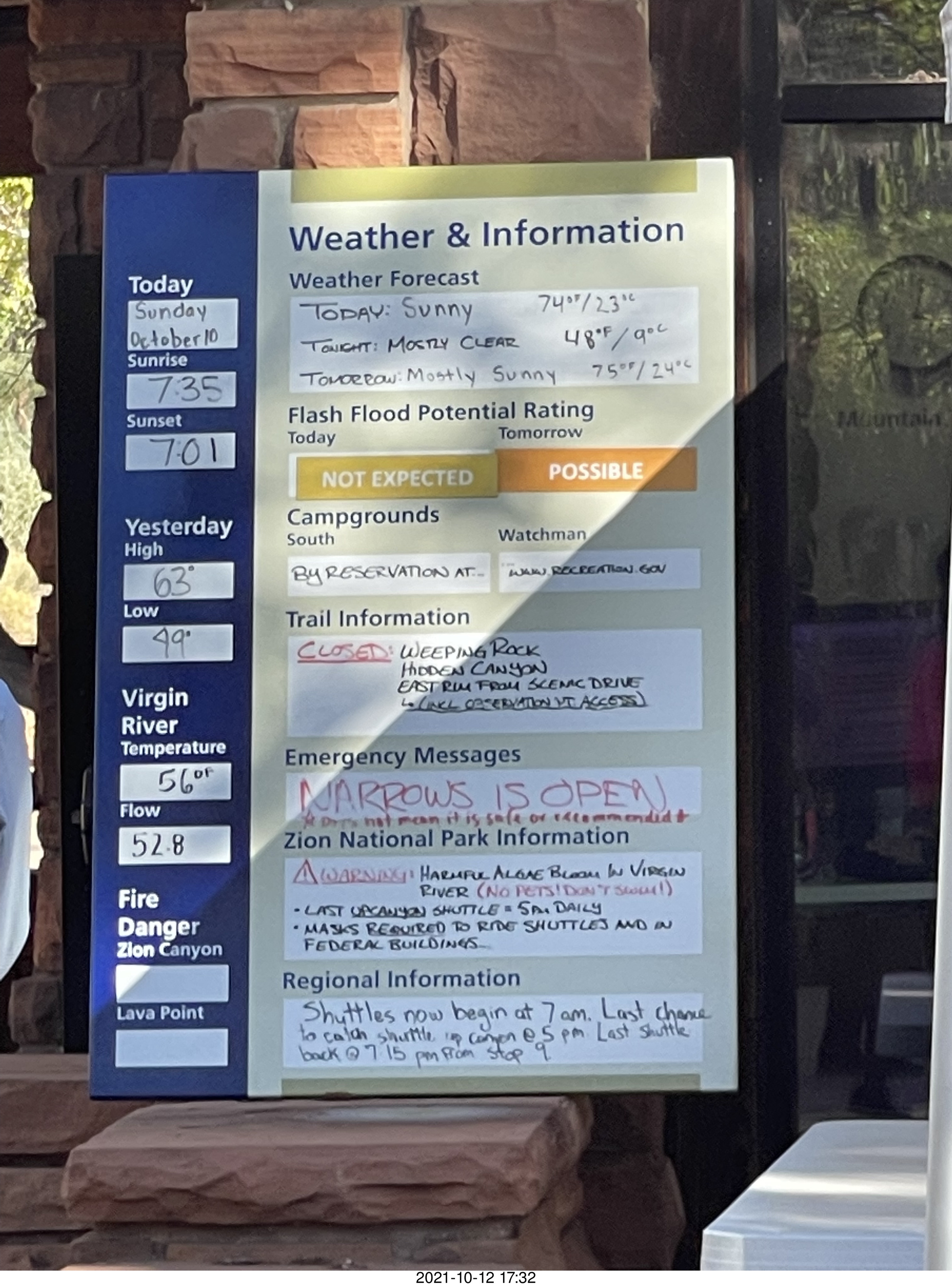 390 a18. Zion National Park weather