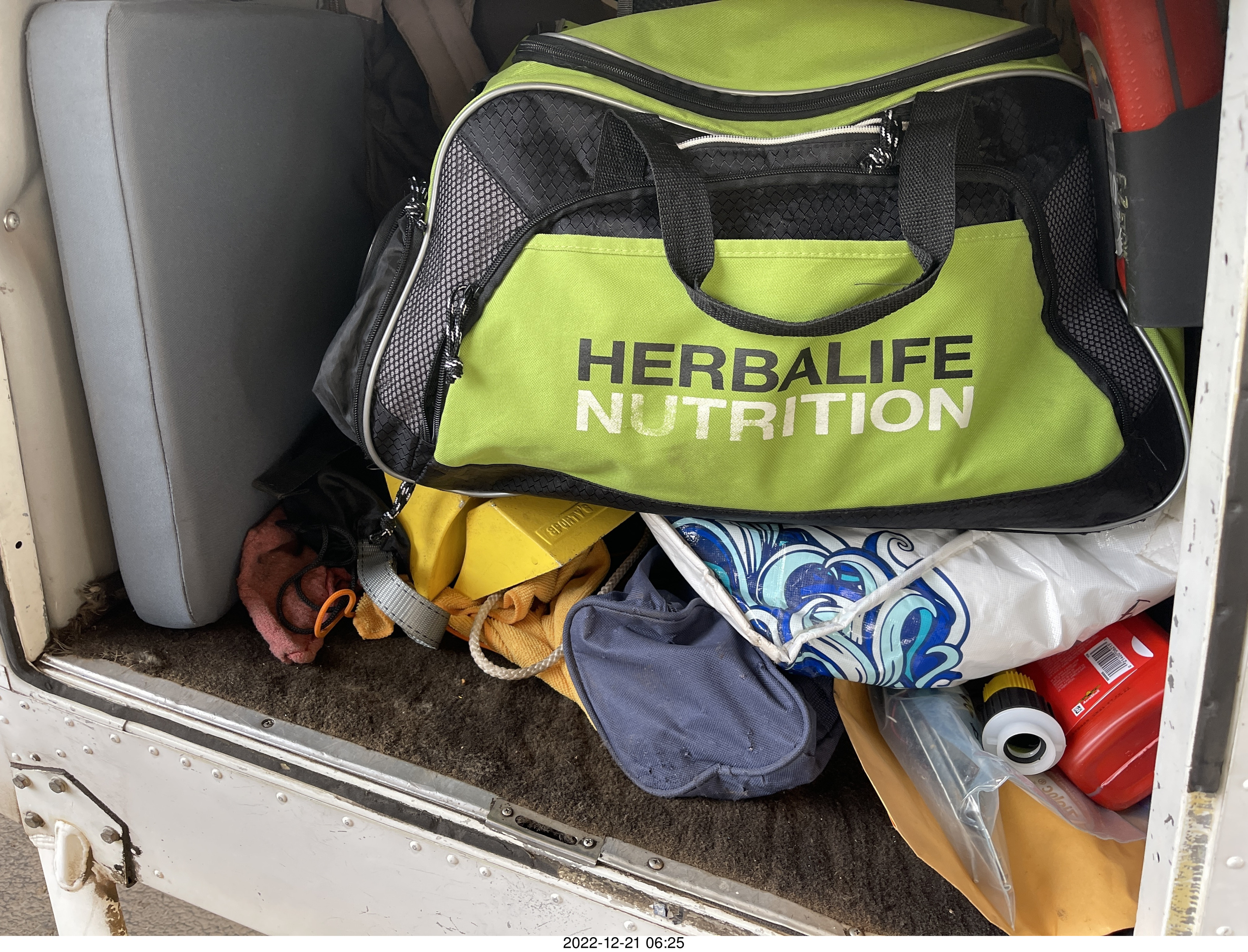 2022 December 21, Wednesday, bnm-9q3.jpg * my bags packed in my airplane for moab trip