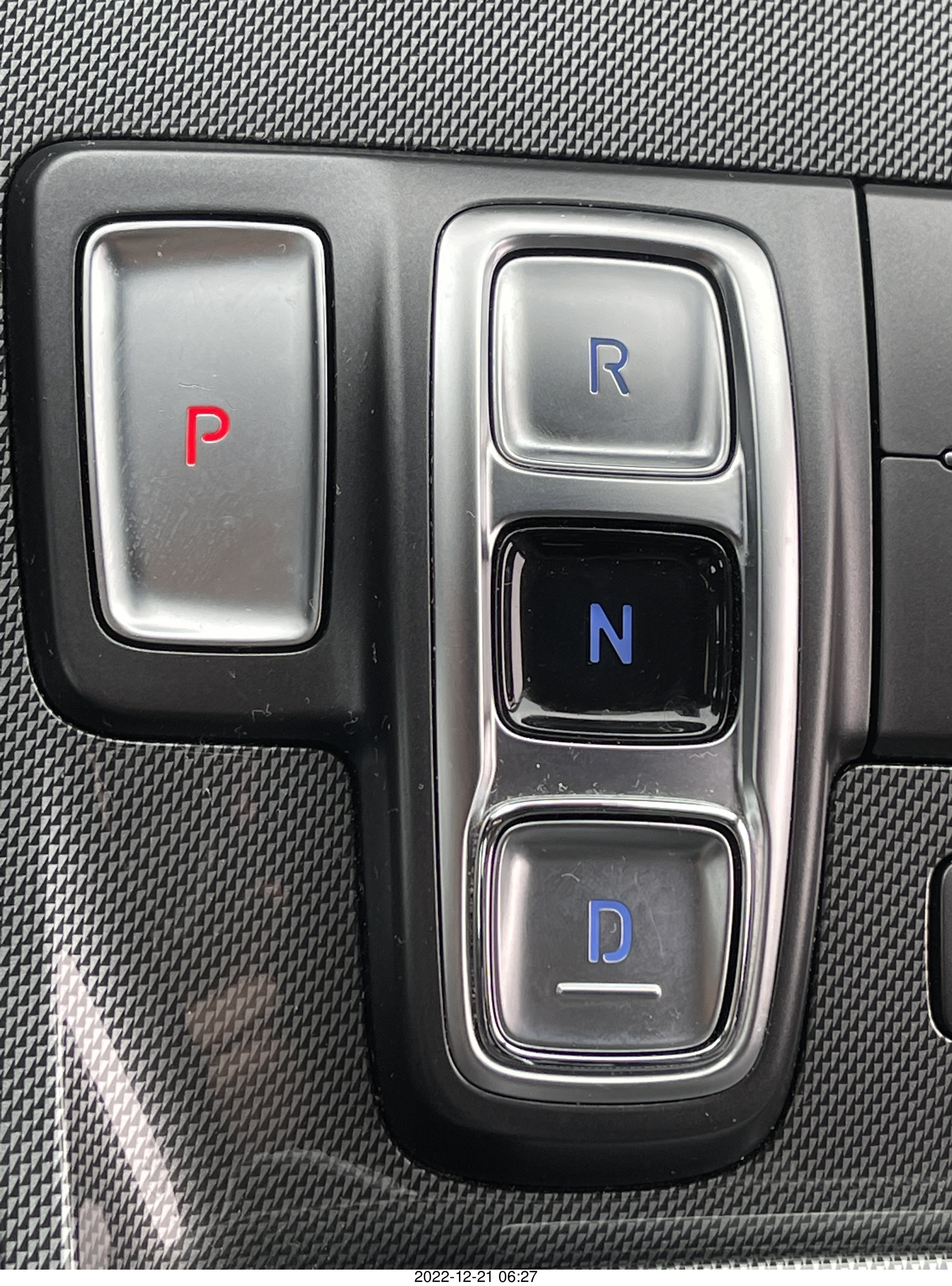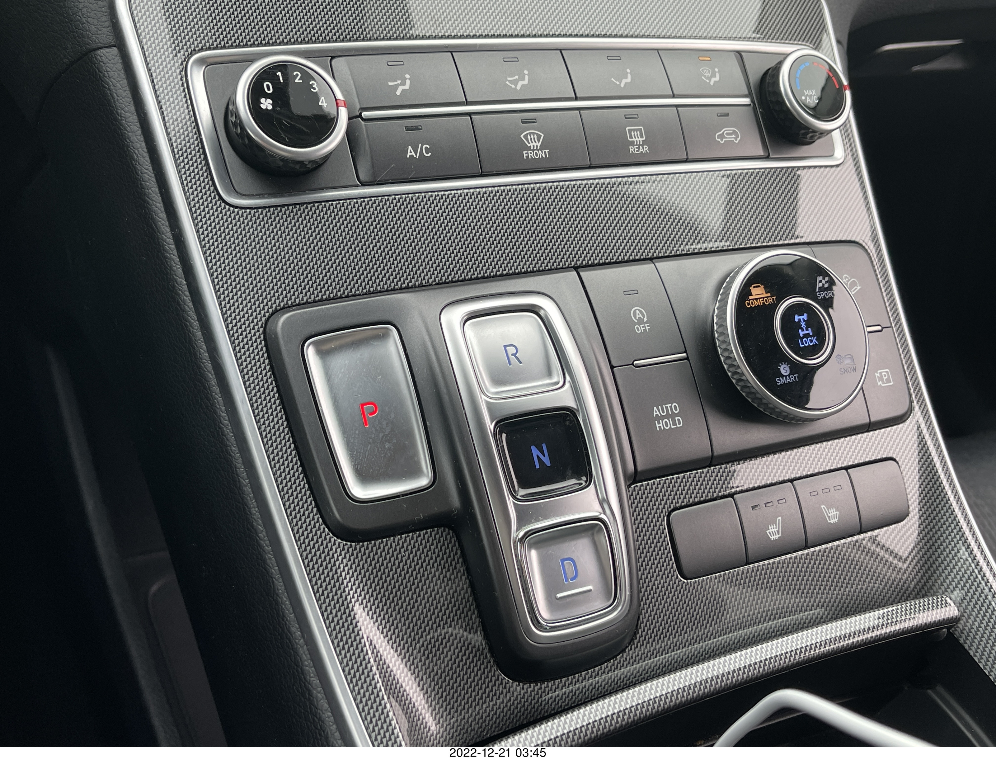 120 a1n. my rental car, Hundai Santa Fe controls - push button transmission