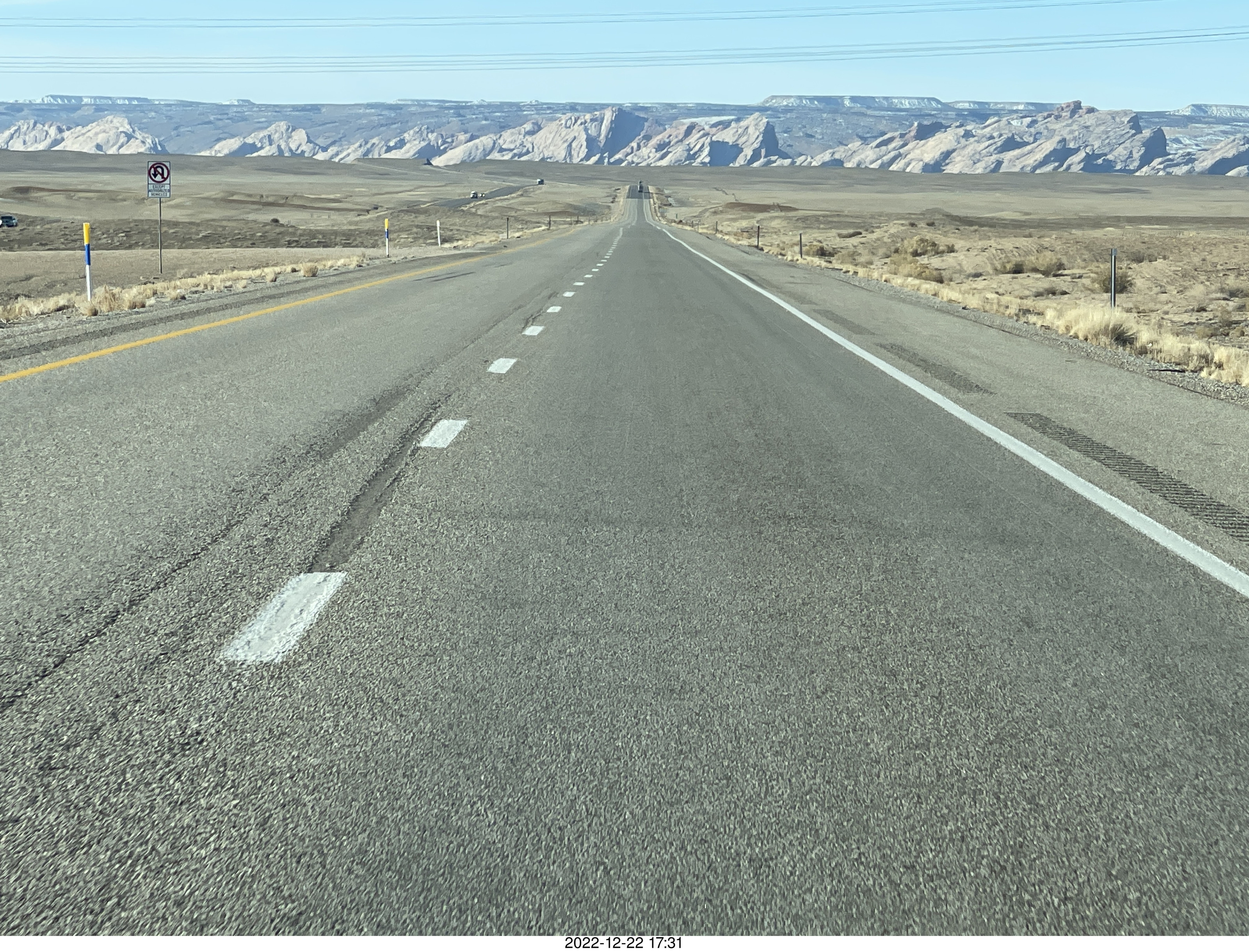 2022 December 22, Thursday, bnn-wxa.jpg * Utah - driving from moab to hanksville - Interstate 70 - San Rafael Reef - runaway truck ramp sign