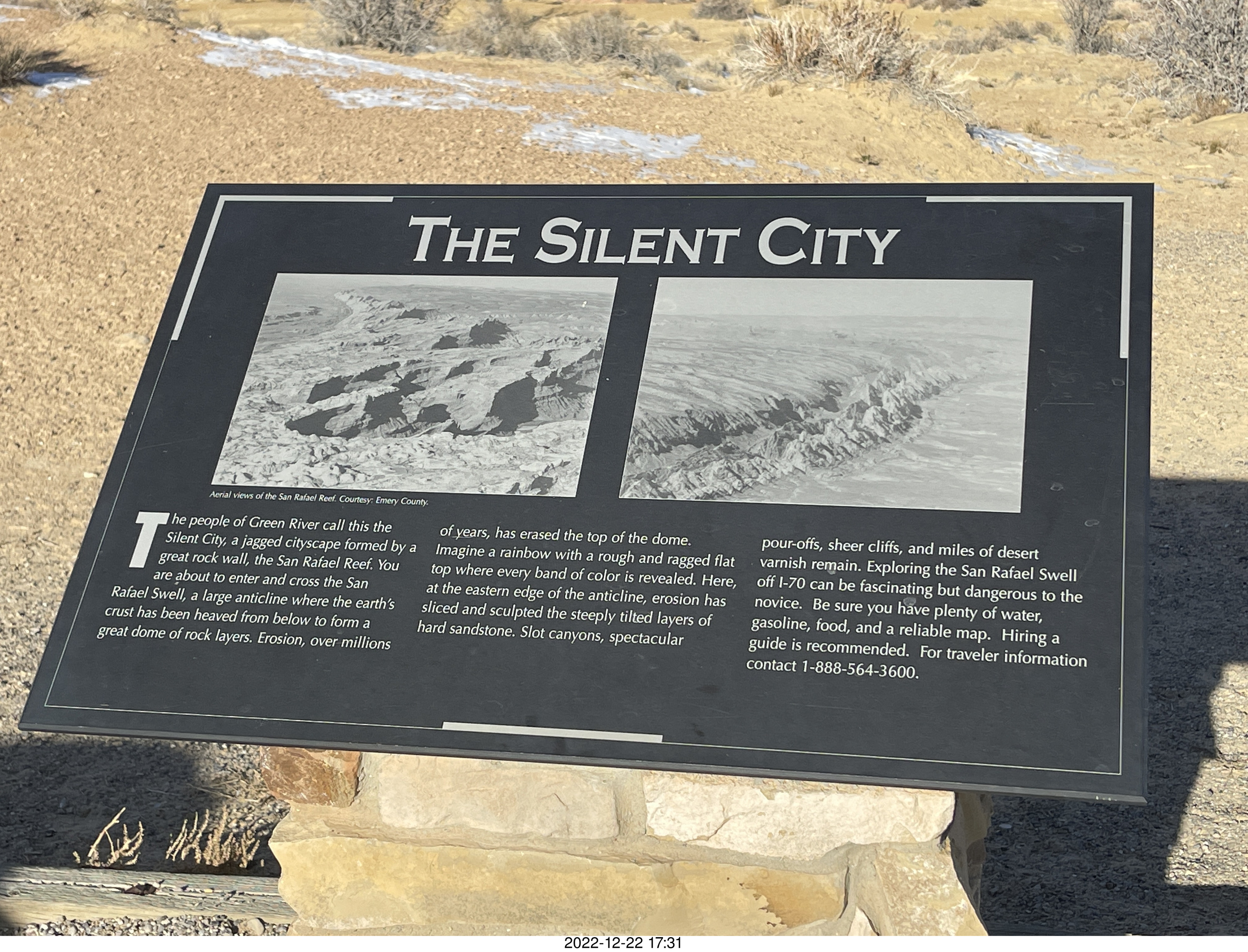 2022 December 22, Thursday, bnn-wvo.jpg * Utah - driving from moab to hanksville - Interstate 70 - San Rafael Reef - sign - the Silent City
