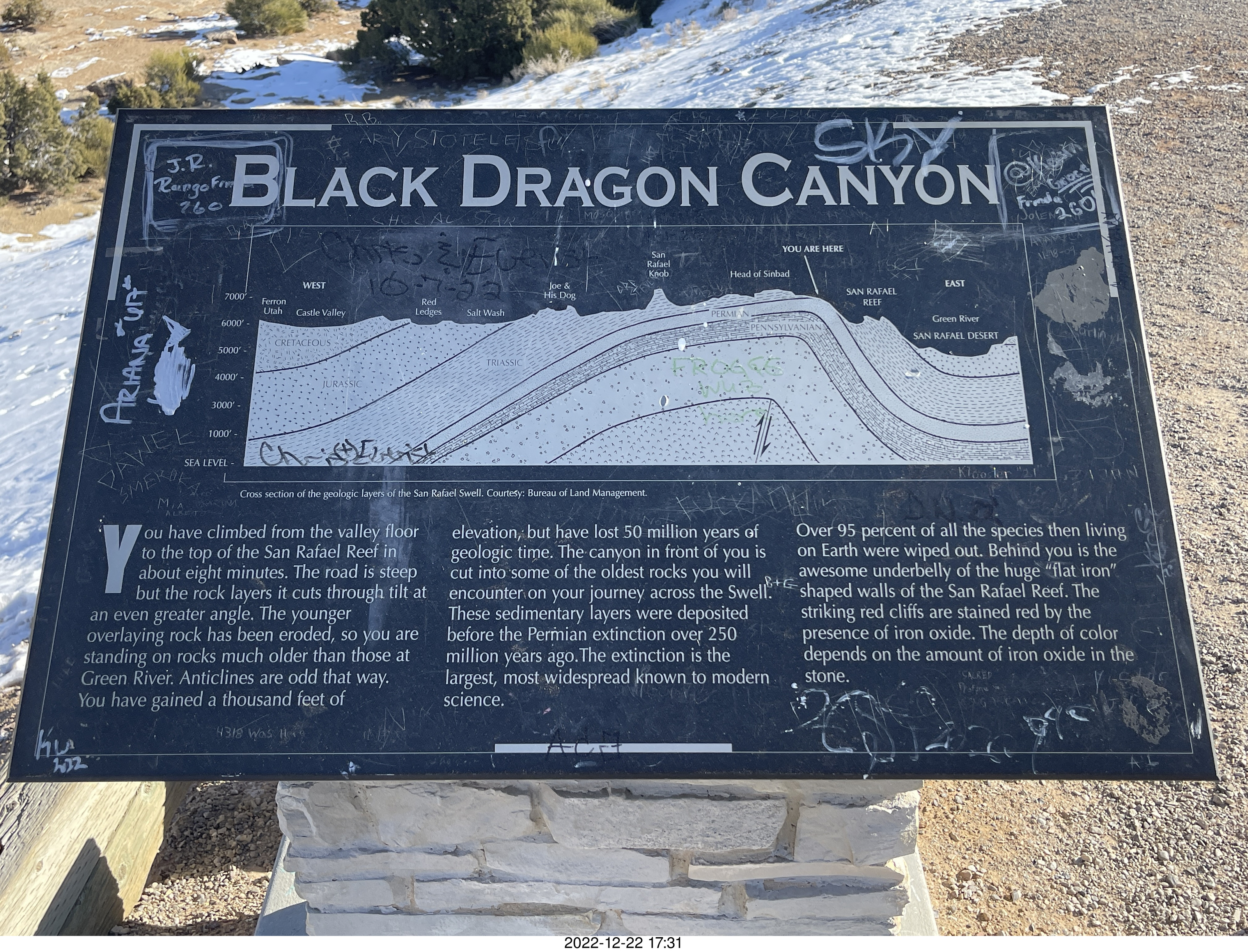 2022 December 22, Thursday, bnn-wws.jpg * Utah - driving from moab to hanksville - Interstate 70 - San Rafael Reef - sign - Black Dragon Canyon