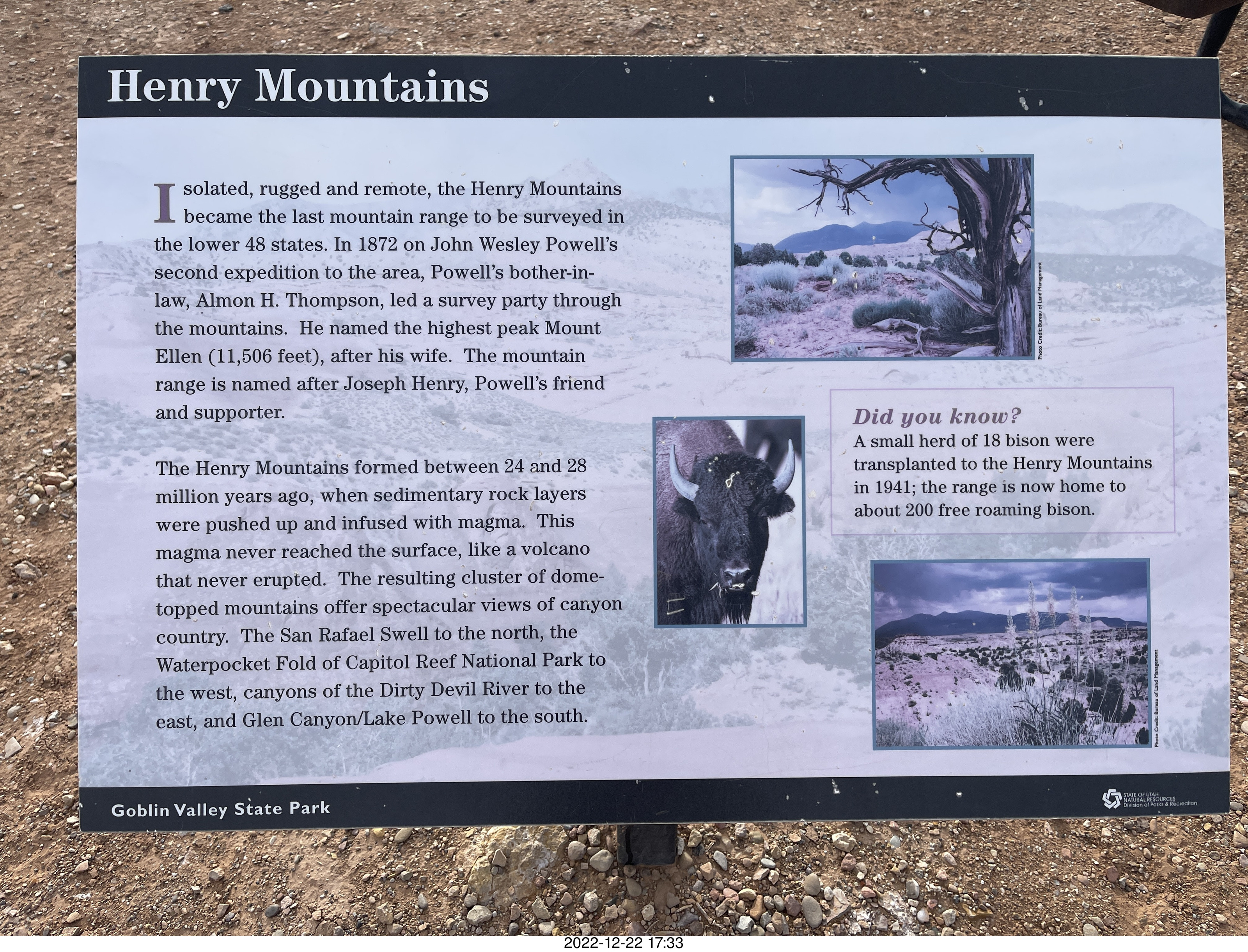 263 a1n. Utah Goblin Valley State Park - Henry Mountains sign