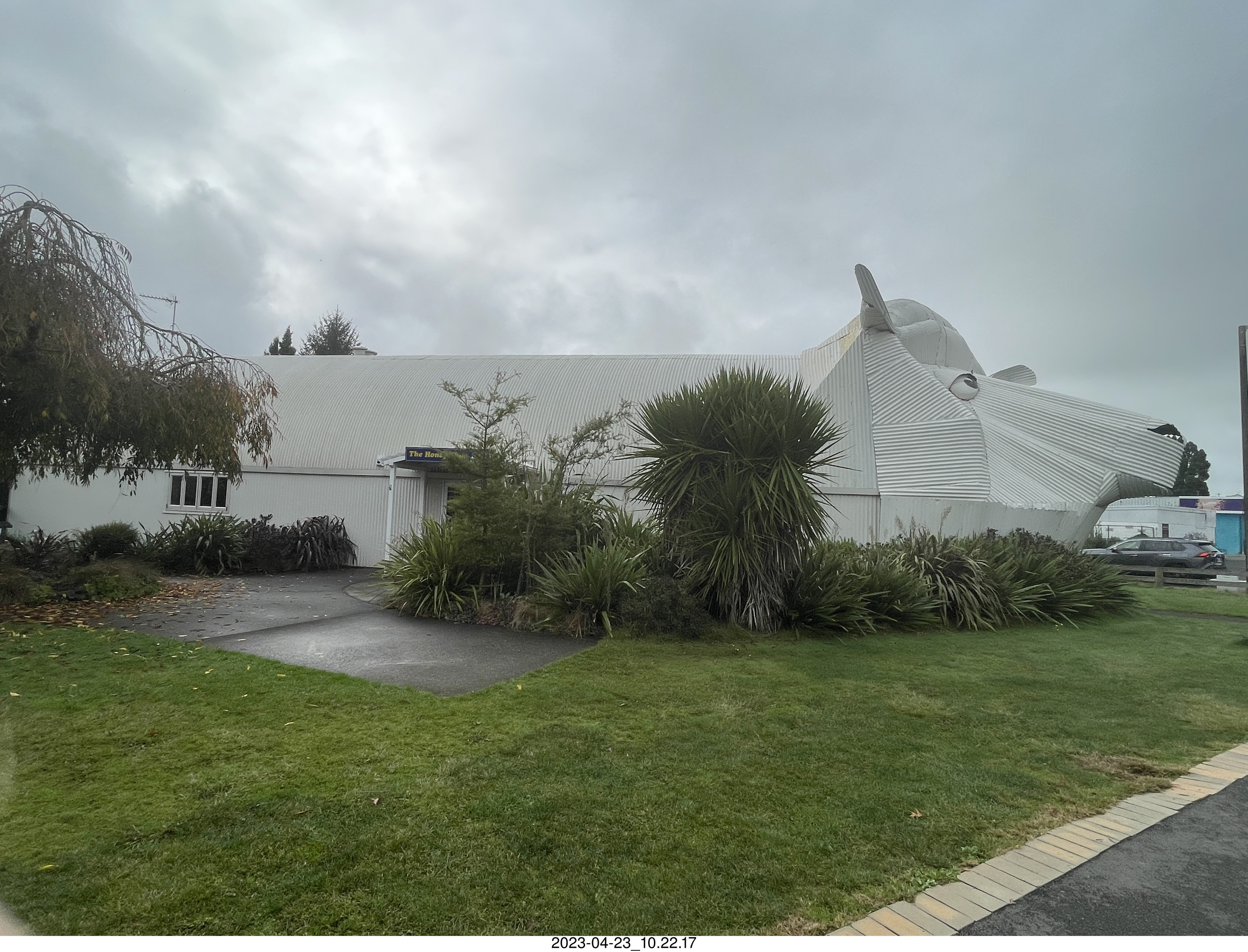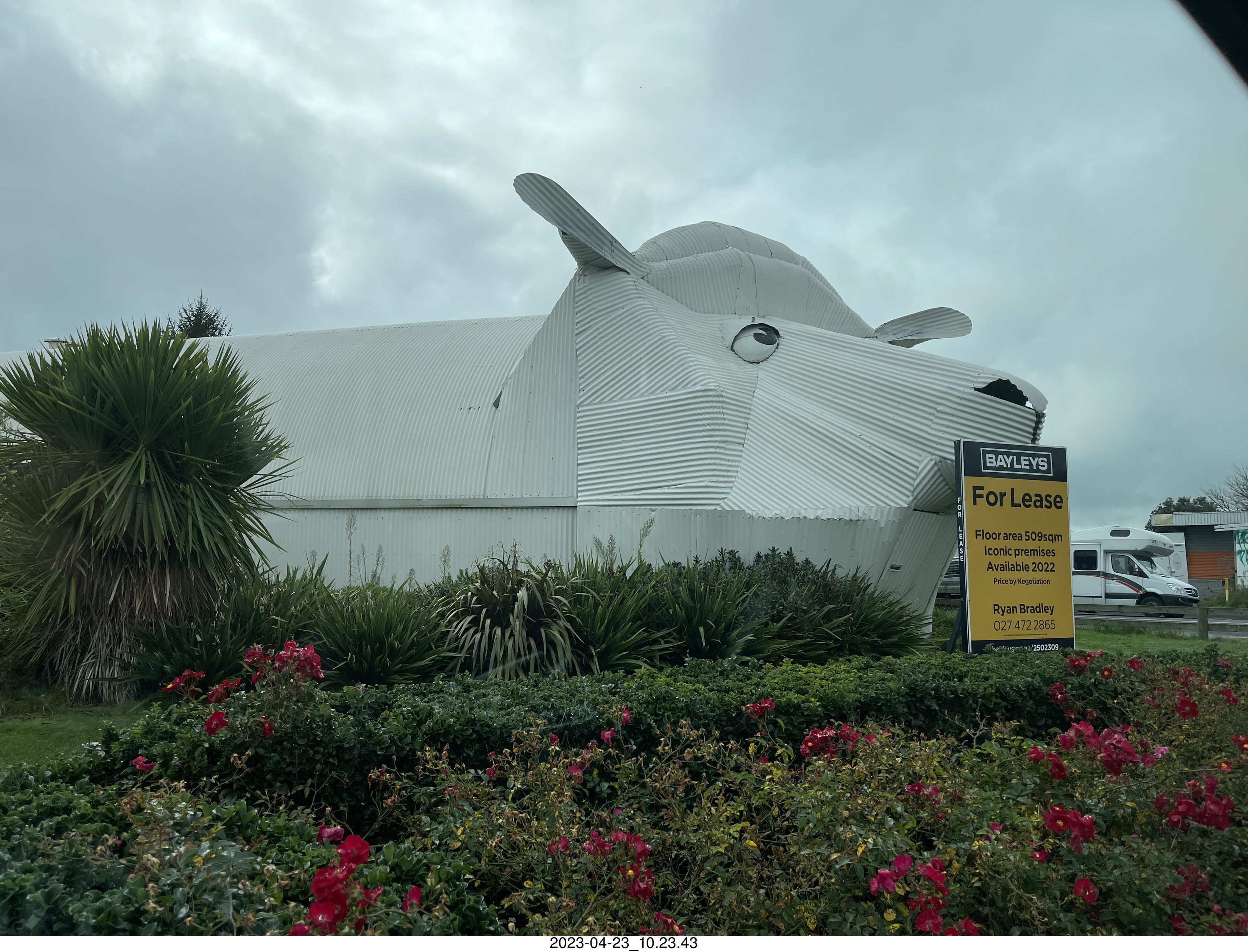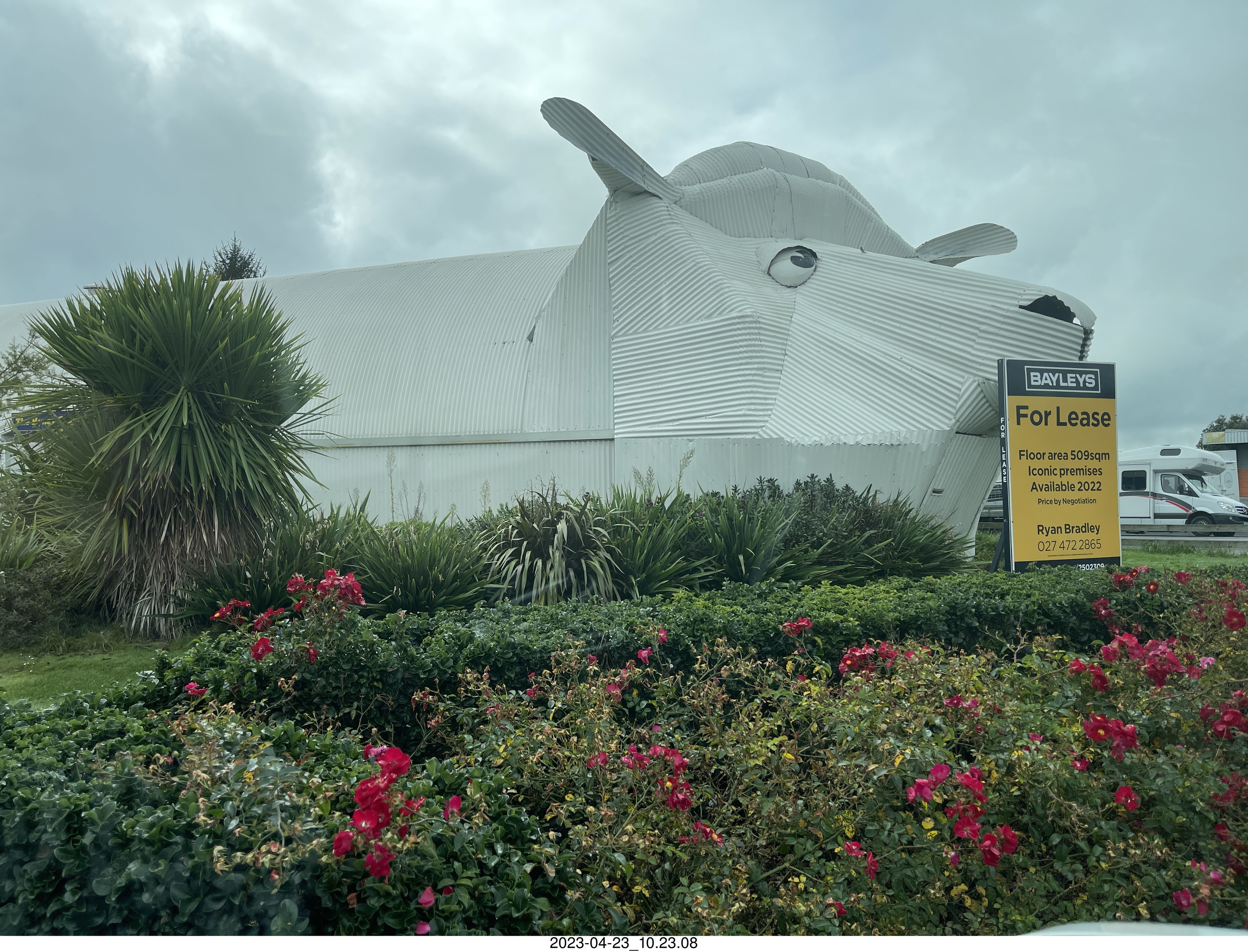 2023 April 24, Monday, bsq-clg.jpg * New Zealand driving to thermal hot springs - building like a sheep