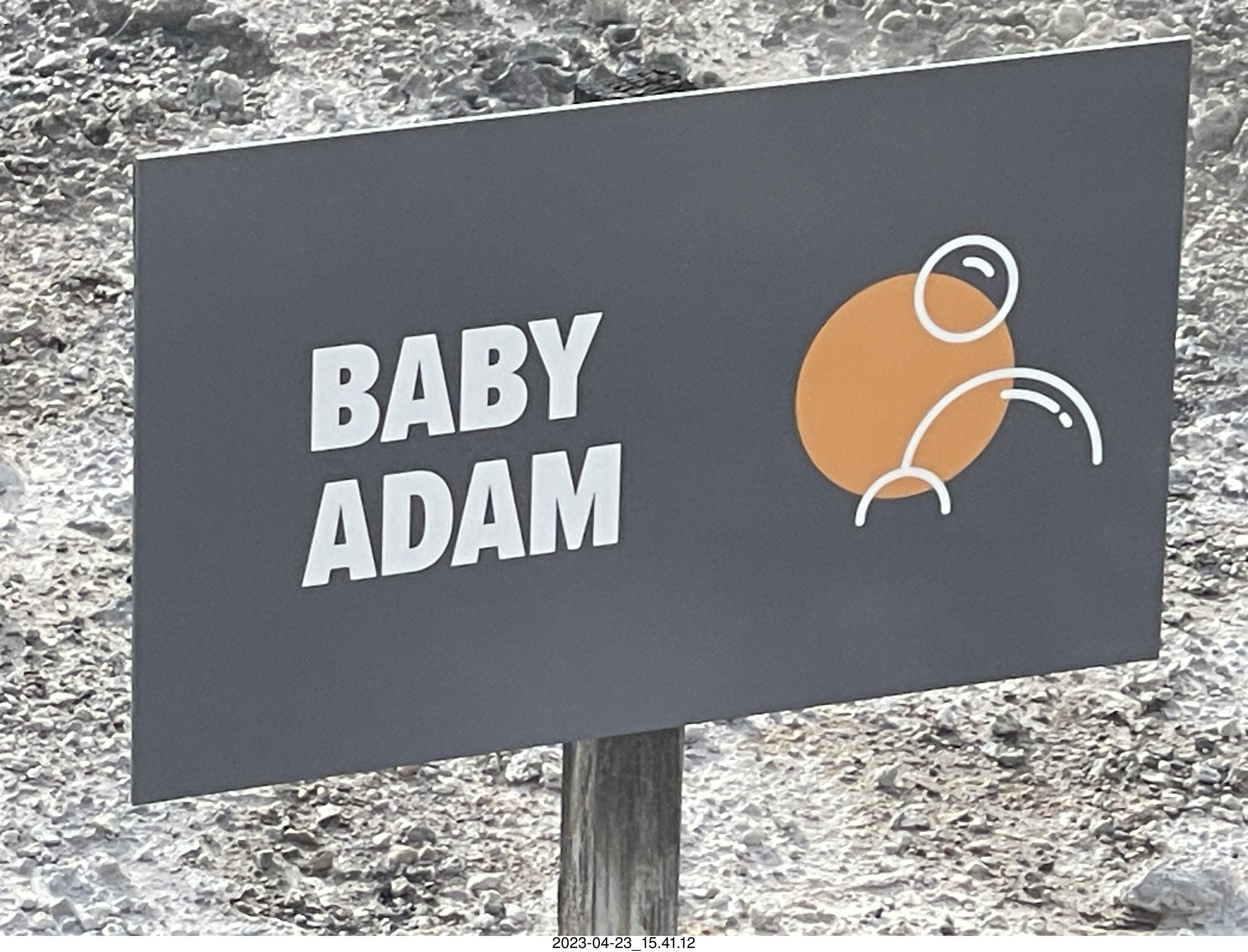 211 a1s. New Zealand - Hell's Gate - mud and thermal walk - sign BABY ADAM