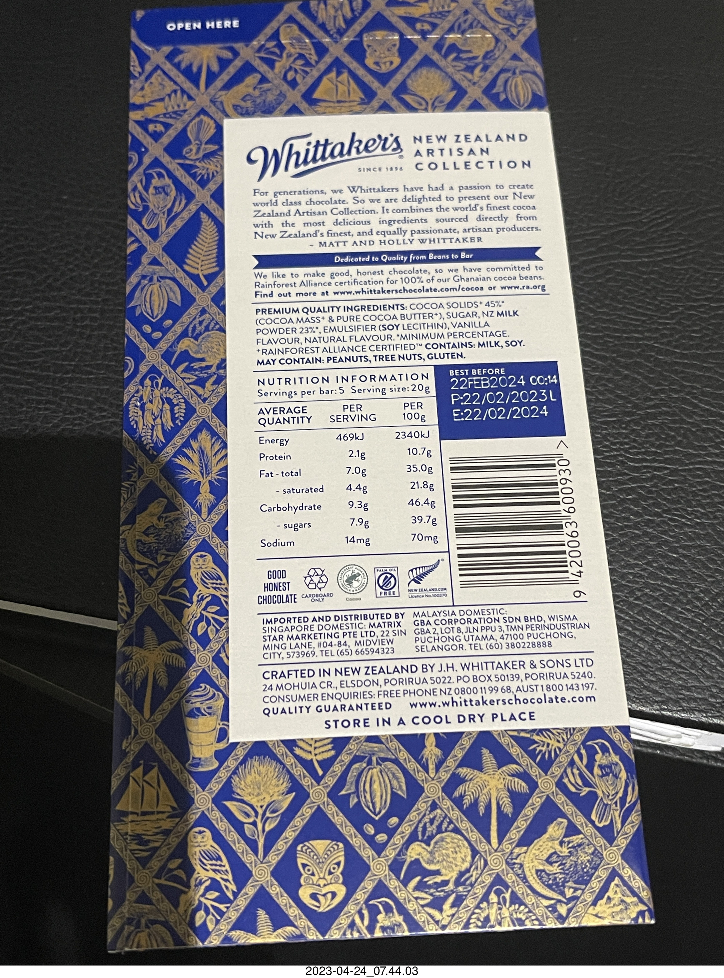 2023 April 26, Wednesday, bss-35c.jpg * New Zealand chocolate bar