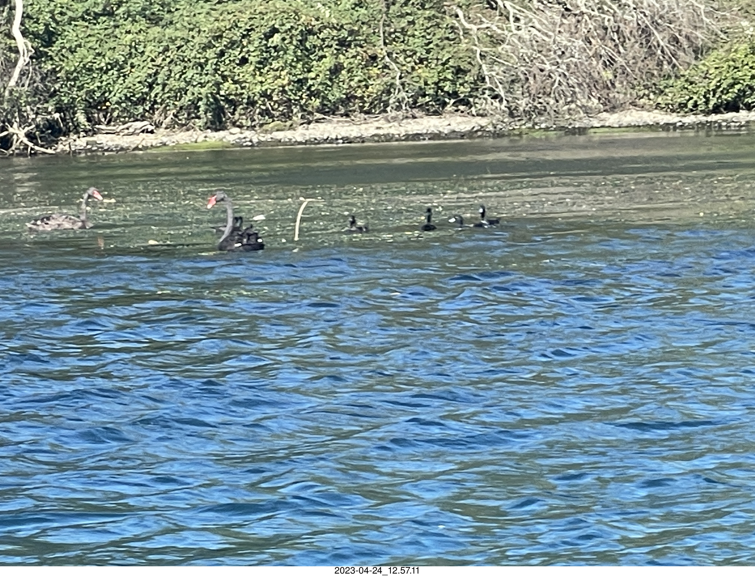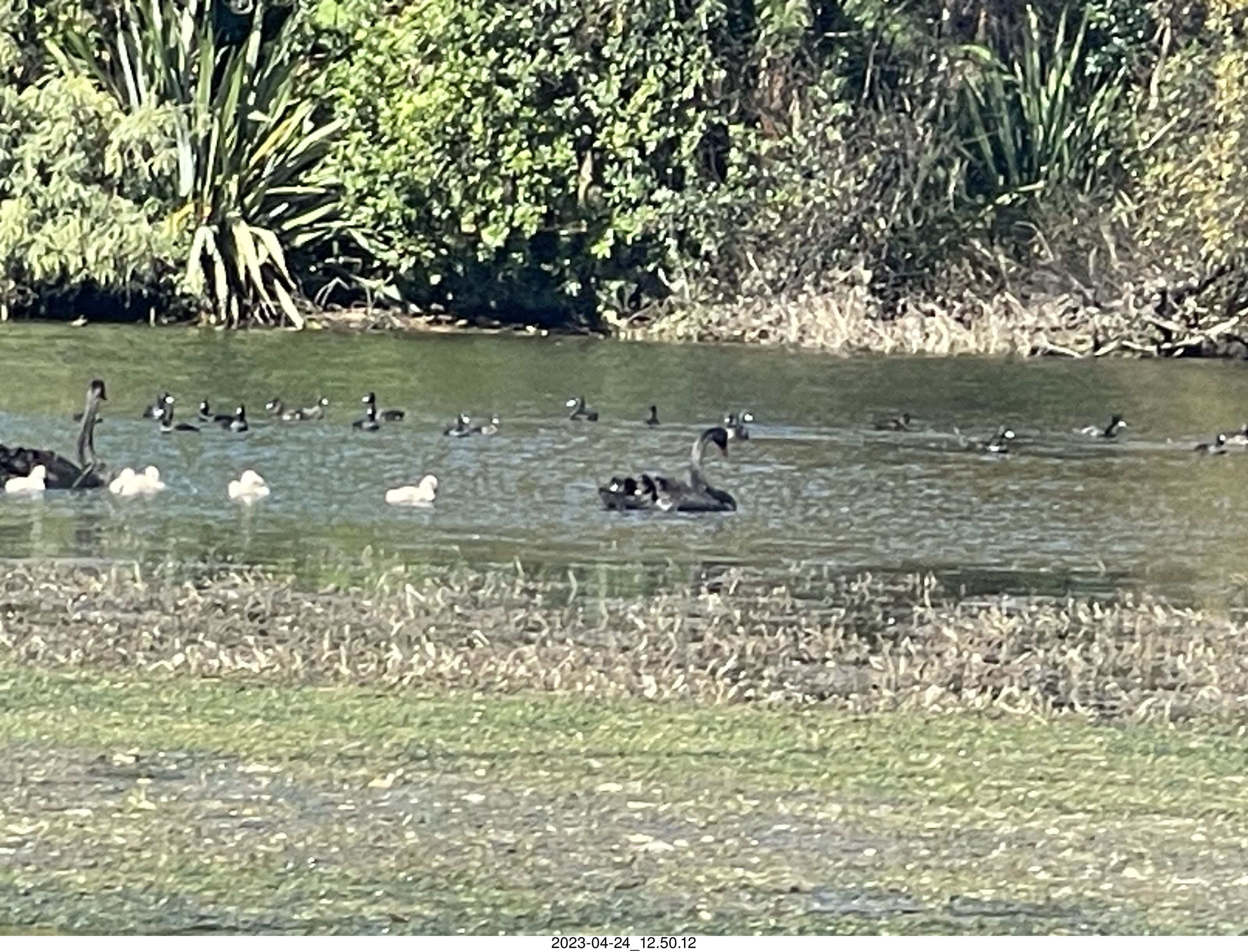 2023 April 26, Wednesday, bss-374.jpg * New Zealand - Huka Falls River Cruise + black swan + birds
