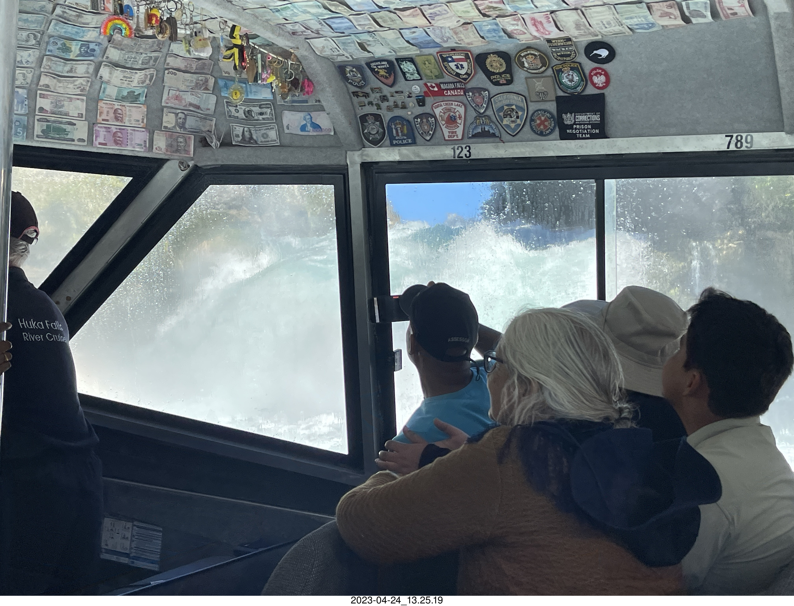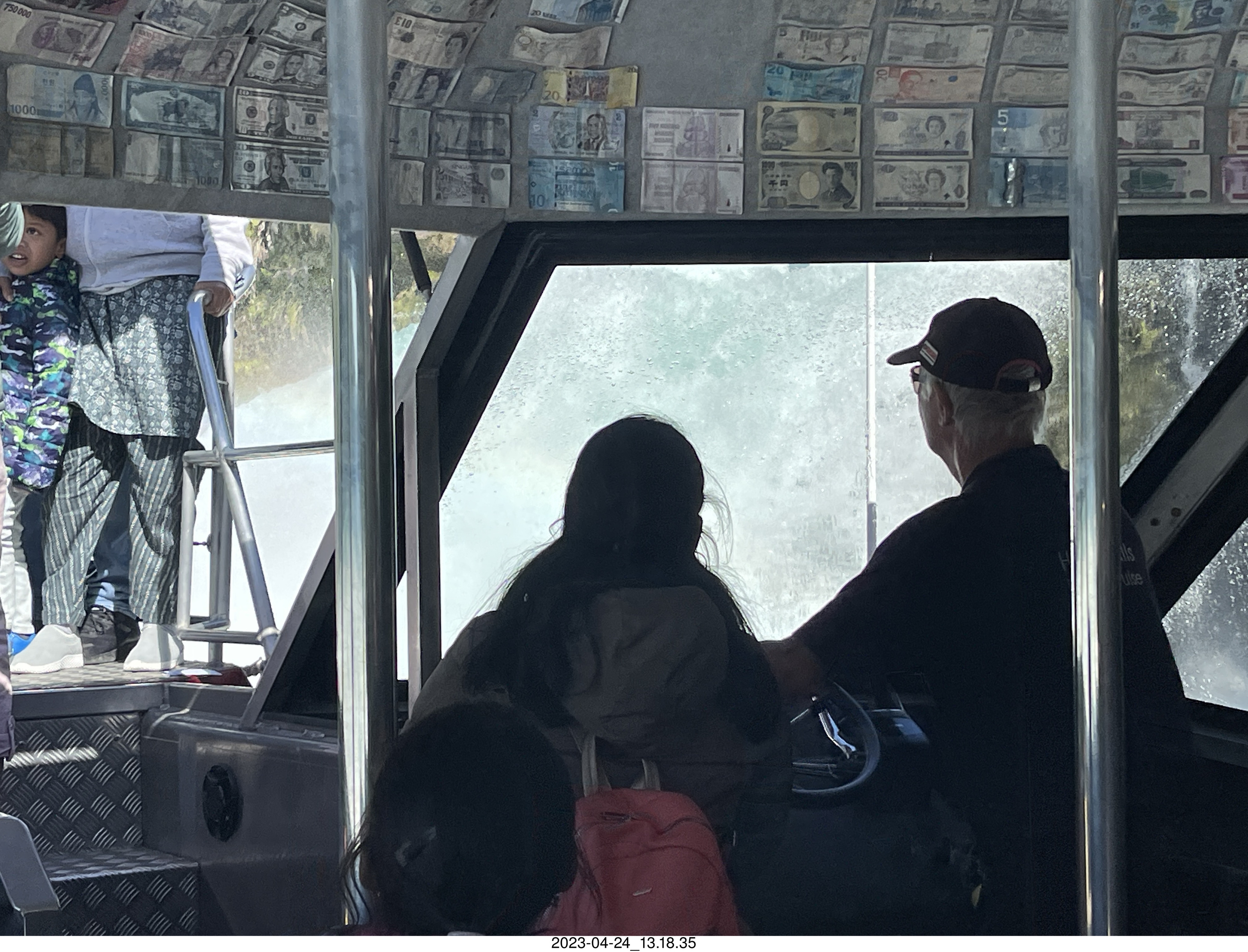 2023 April 26, Wednesday, bss-36z.jpg * New Zealand - Huka Falls River Cruise - dollar bills of various currency