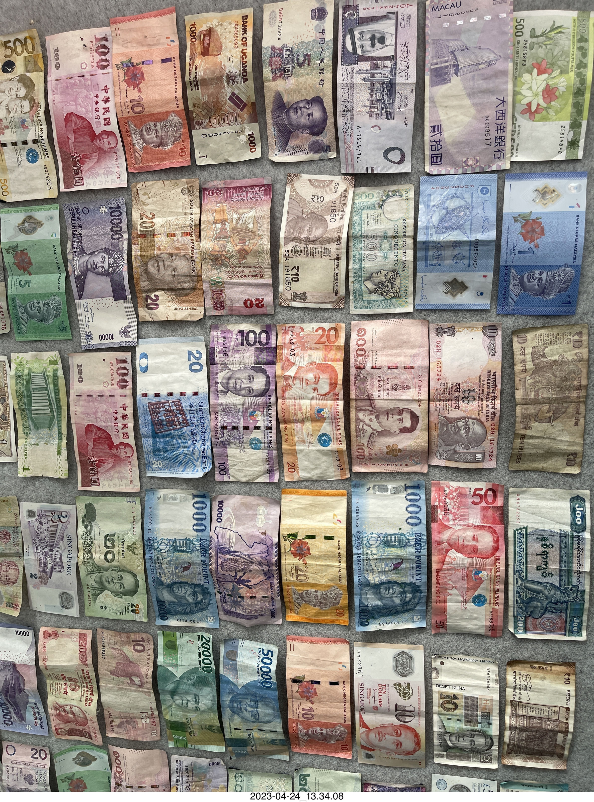 2023 April 26, Wednesday, bss-371.jpg * New Zealand - Huka Falls River Cruise - dollar bills of various currency