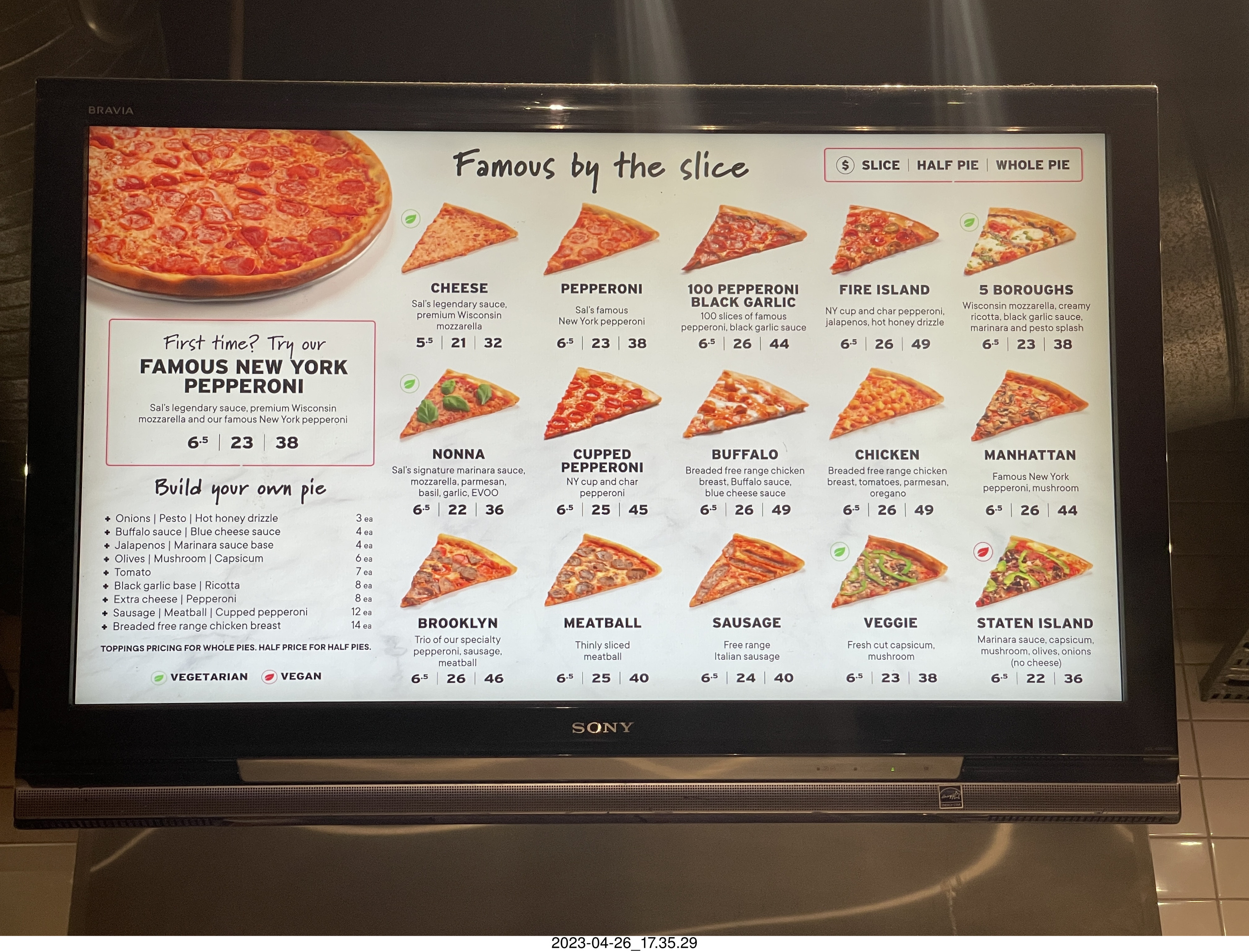320 a1s. New Zealand - Auckland - New York pizza menu