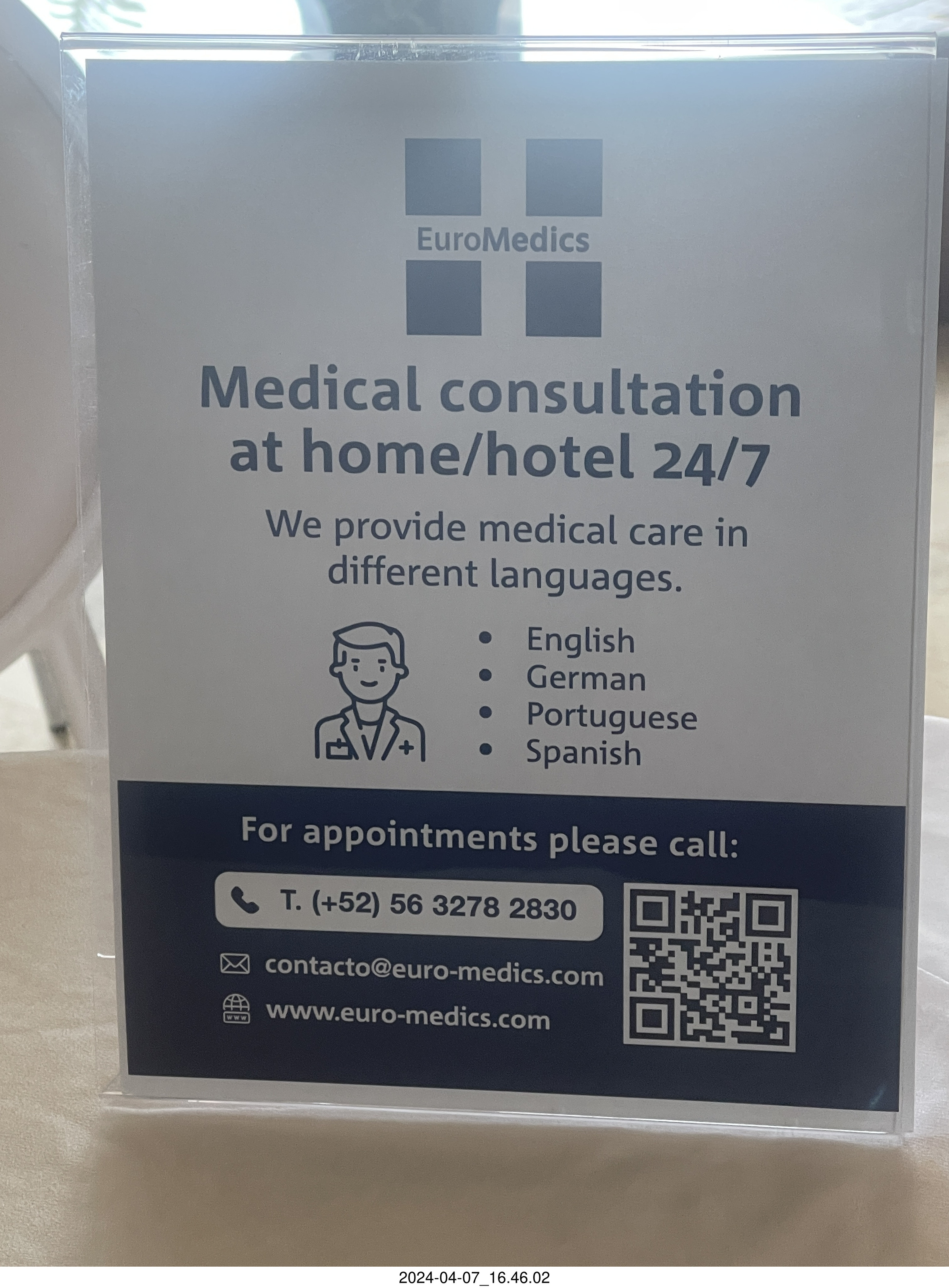 2024 April 7, Sunday, c47-vx6.jpg * hotel lobby Astro Trails desk with notices